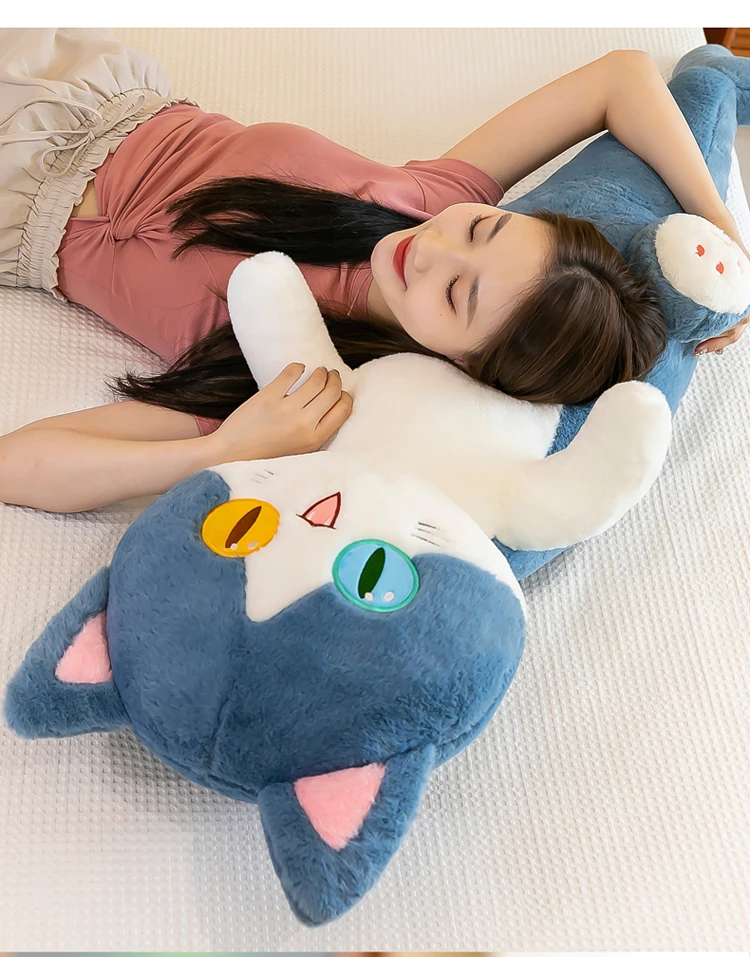 135cm Different Pupil Shark Cat Doll Sleeps with Pillow Girl Sand Sculpture Plush Toy Male Long Striped Leg Clamping Stitch
