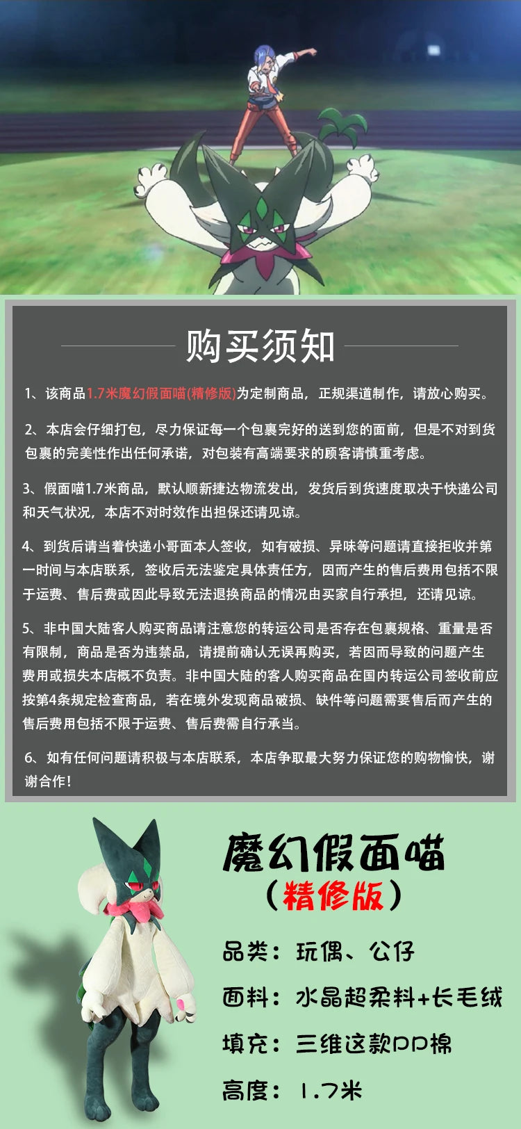 170CM Meowscarada Plushies NEW Pokemon Peluche Kawaii Cartoon Anime Stuffed Ornament Comfortable Soft Doll Children Toy Gift