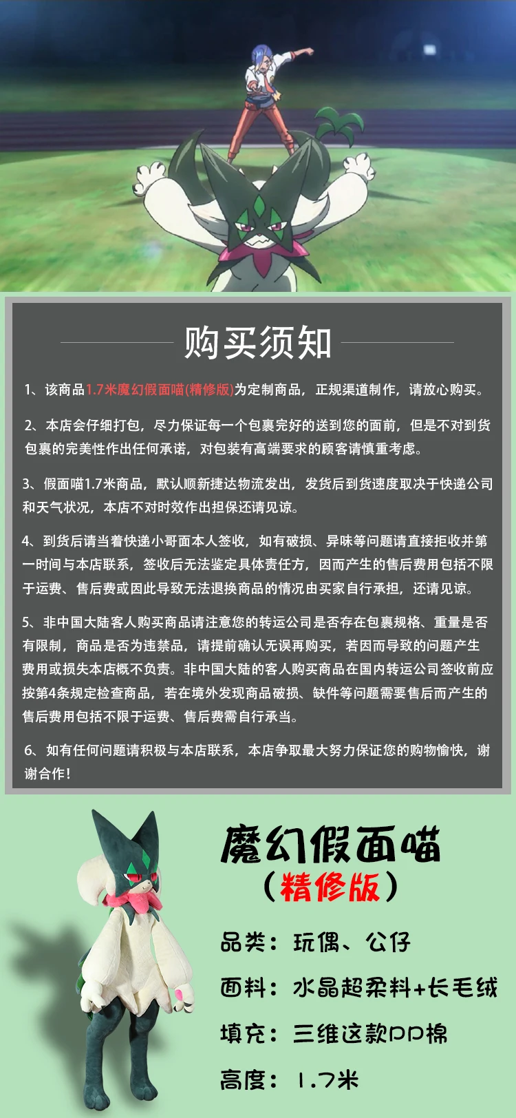 170CM NEW Meowscarada Plushies Pokemon Peluche Kawaii Cartoon Anime Stuffed Ornament Comfortable Soft Doll Children Toy Gift