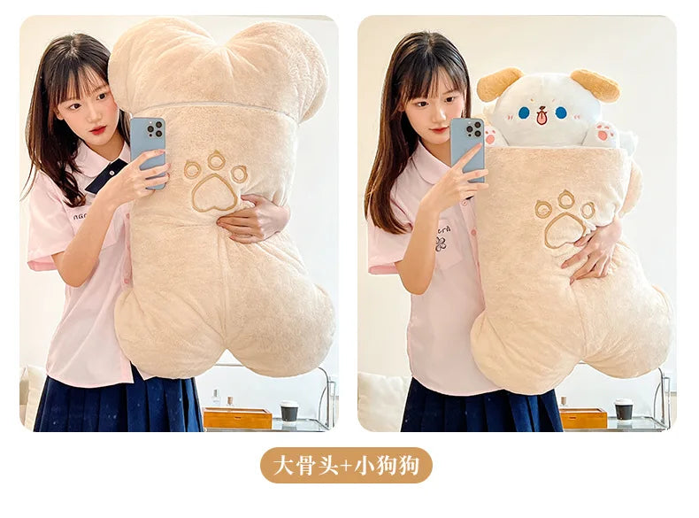 80X45cm Kawaii Taiyaki Cat Plush Toy Rabbit Hiding in Carrot Dog in Big Bones Ferry Animals Plushie Throw Pillow For Kids Girl