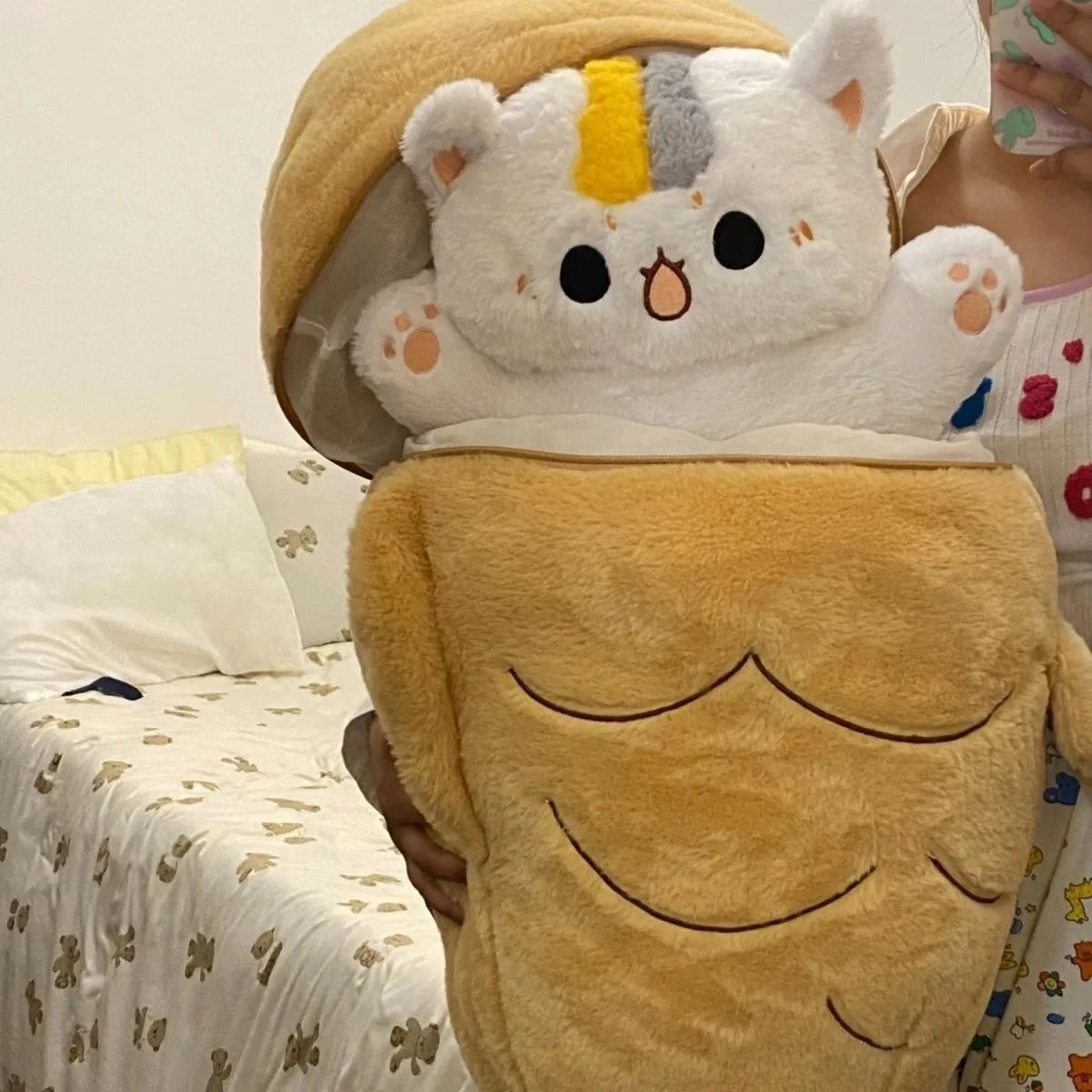 1pc Big Size Japan Taiyaki Cat Plushie Hiding in Sleeping Bag Bunny in Carrot Ferry Animals Plushie Throw Pillow For Kids Girl