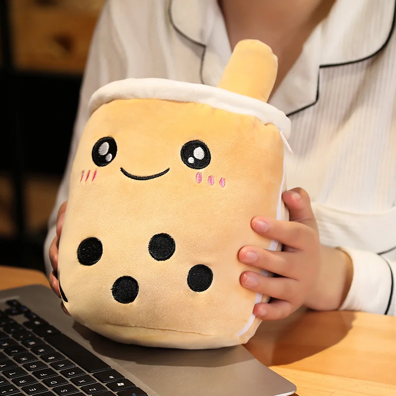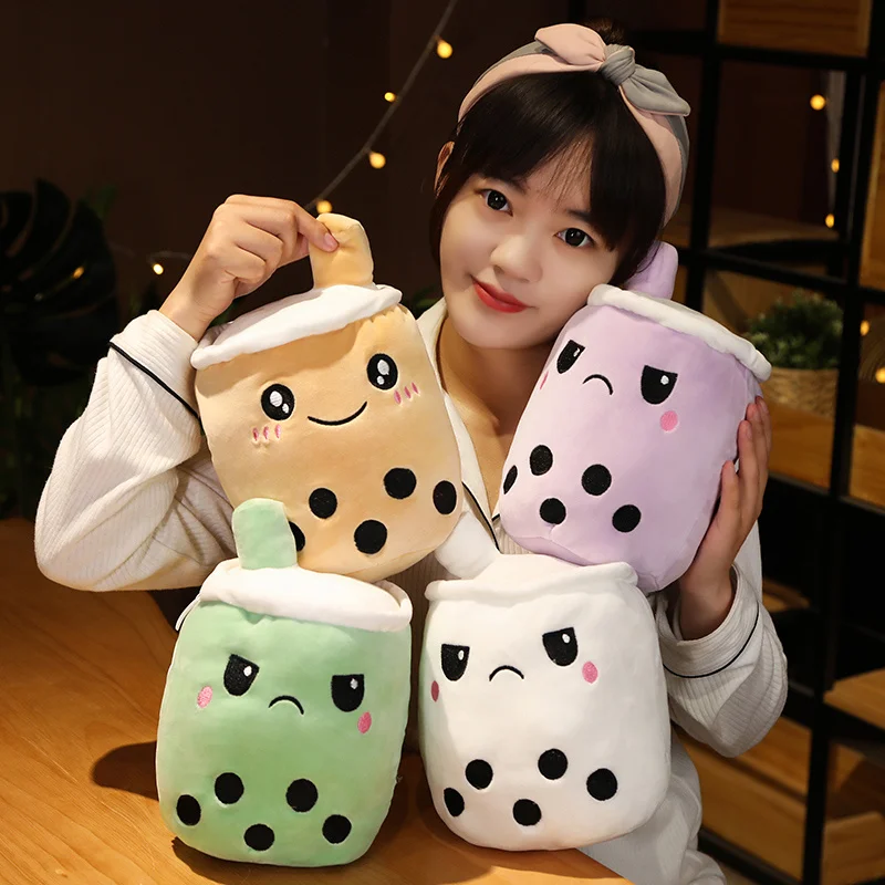 1pc Reversible Boba Plush Toys Double-Sided Bubble Tea Baby Cuddly Doll Stuffed Two-sided Boba Milk Tea Toy Xmas Gifts for Kids