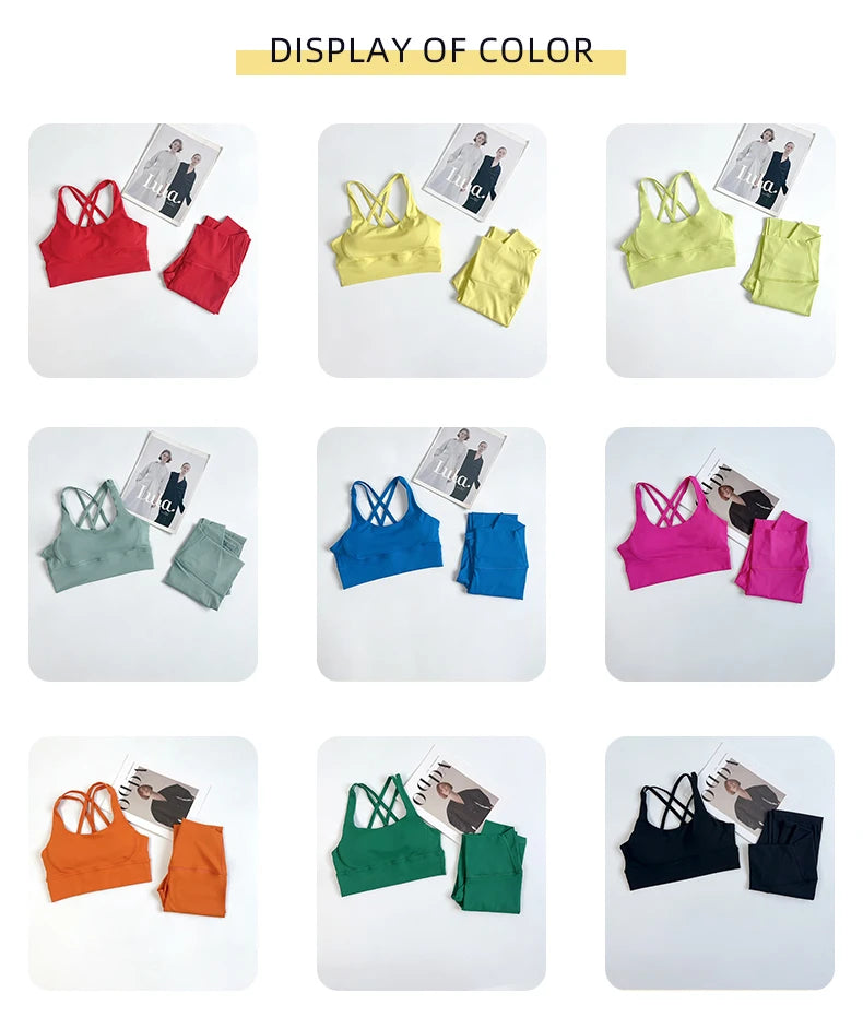 2 Pieces Yoga Set Women Gym Set Workout Clothes Sports Suits High Waist Leggings Cross Straps Fitness Bra Top Running Tracksuit