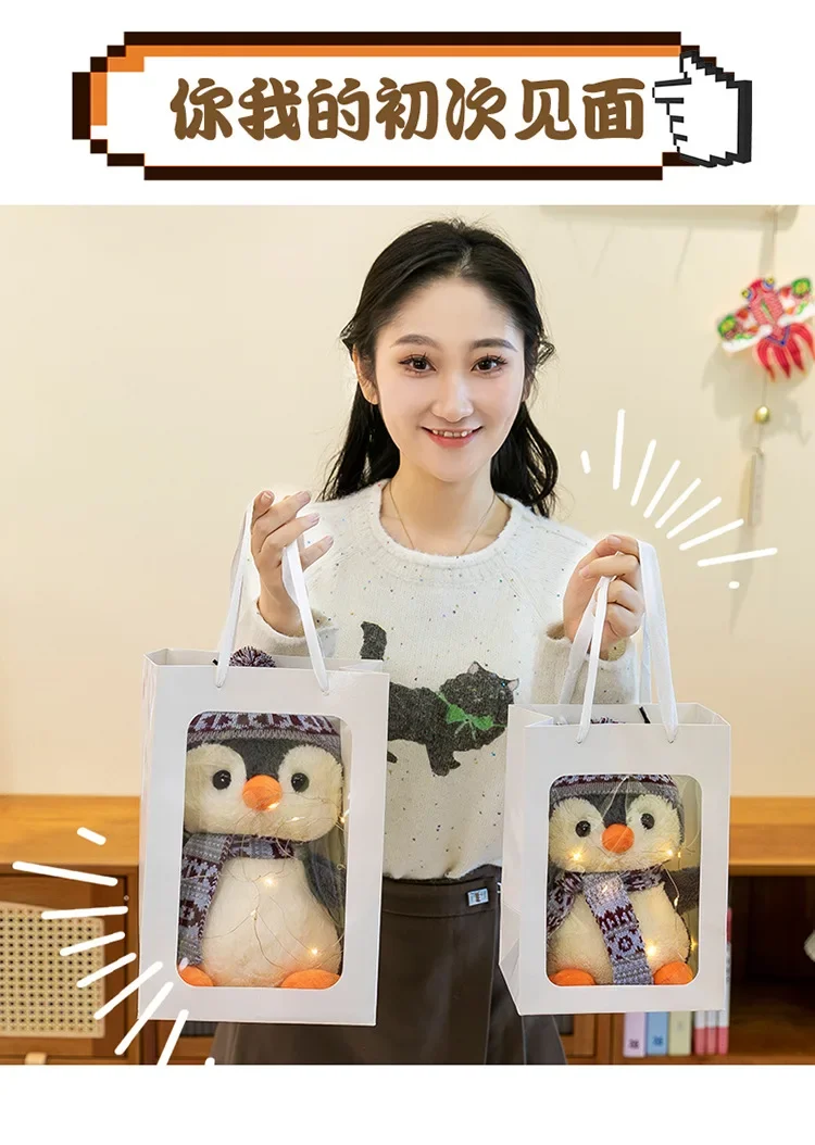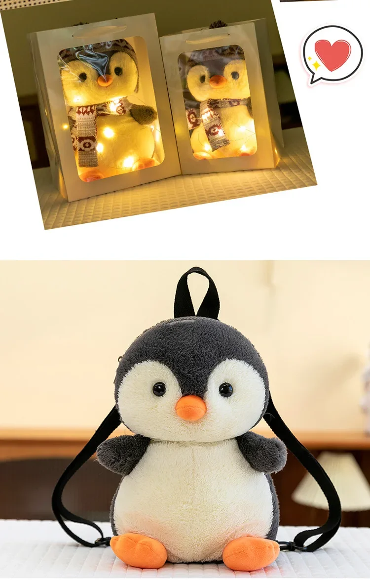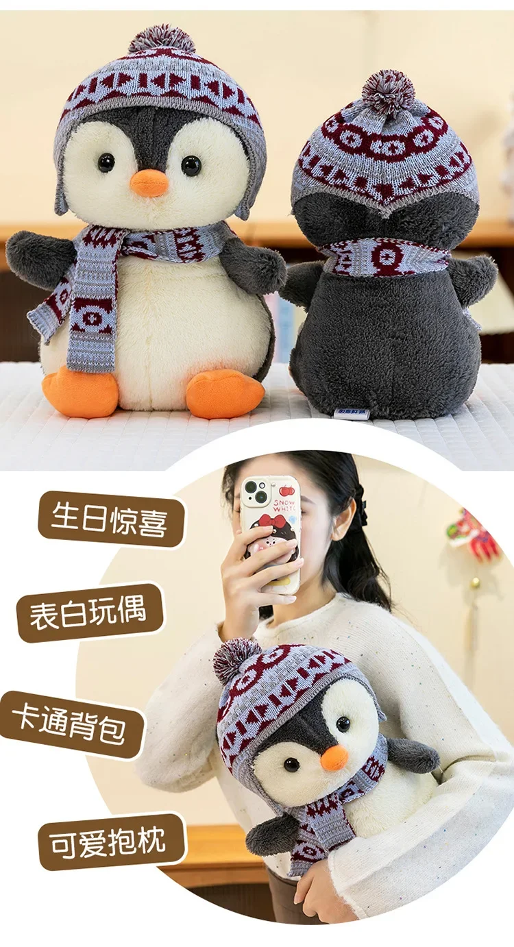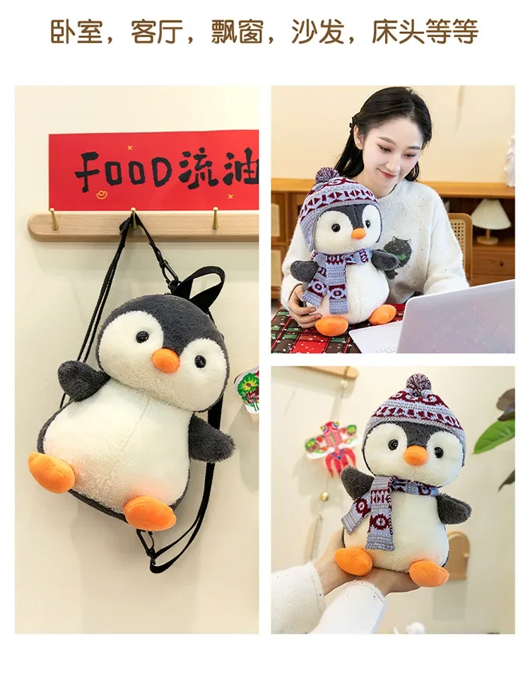 20-35cm Cute Penguin Wear Hat & Scarf Plush Toys Stuffed Animal Penguin Backpack Bags for Kids School Birthday Gift Xmas Decor