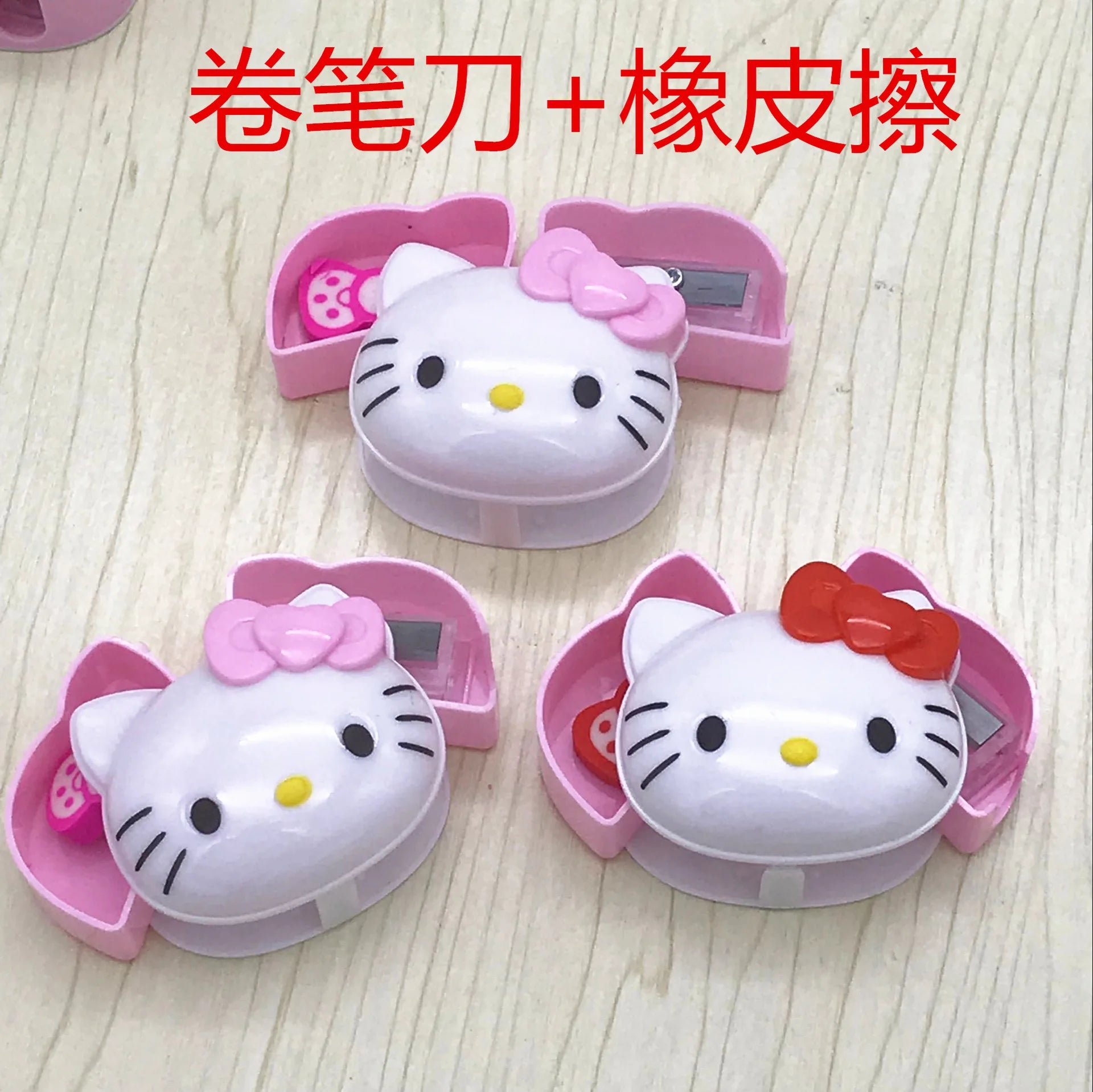 24pcs Sanrio Cartoon Creative Kt Pencil Sharpener+rubber Two-in-one Student Stationery Set Children's Dual-use Prizes Wholesale