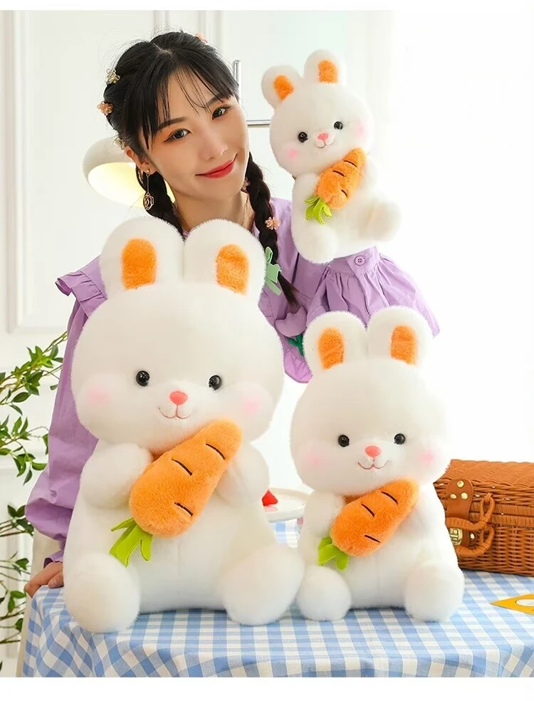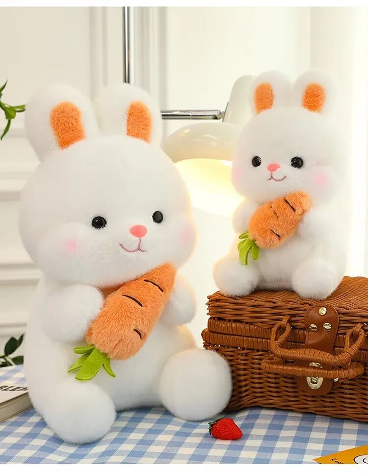 25-50cm Adorable Fuzzy Bunny Hold Carrot Plush Toy Stuffed White Rabbit with Foods on Hand Kids Hug Cuddly Plushie for Children