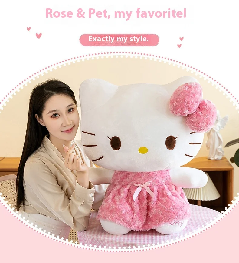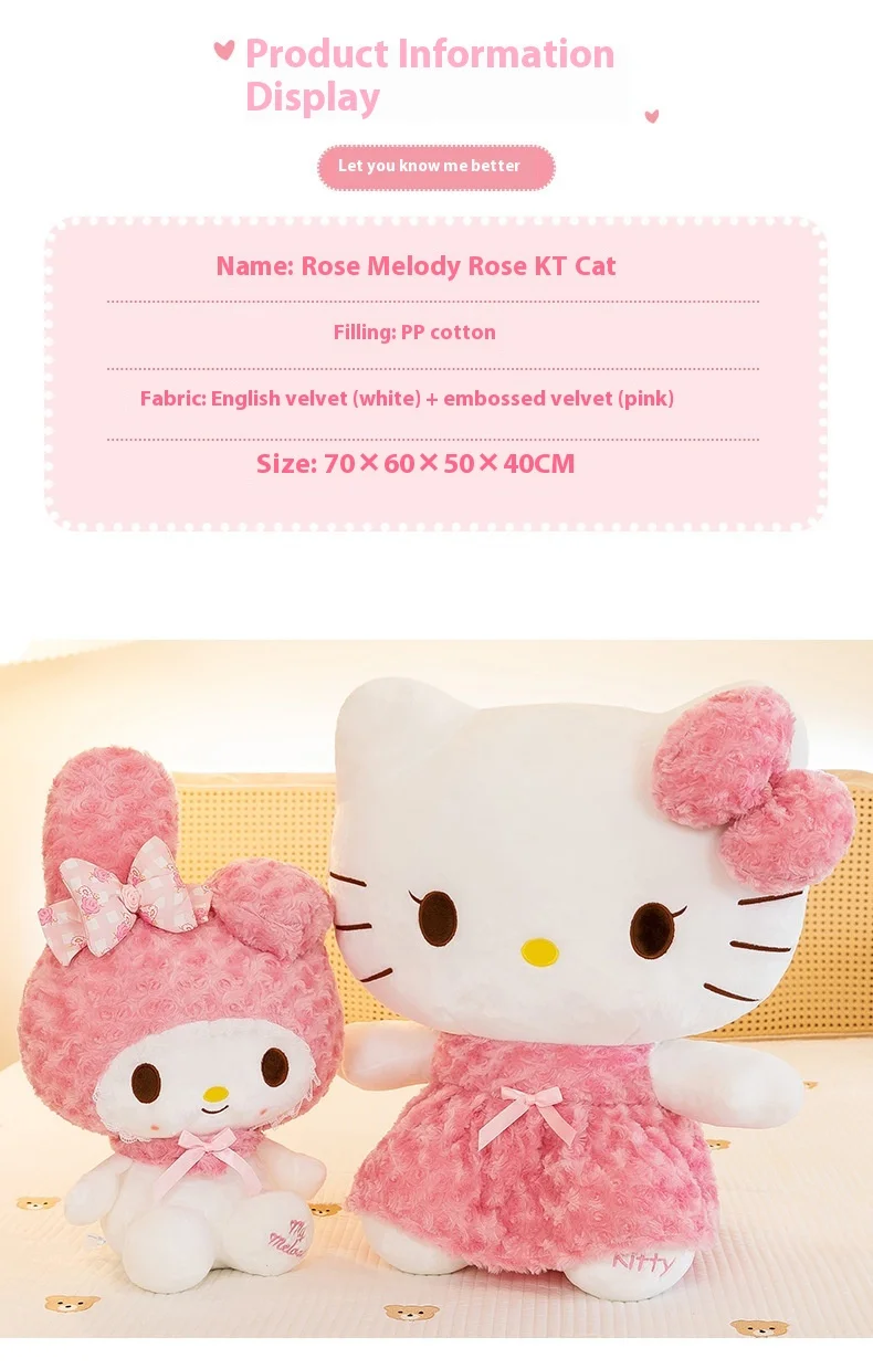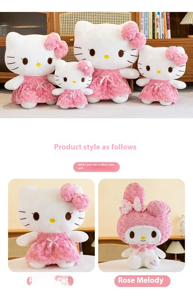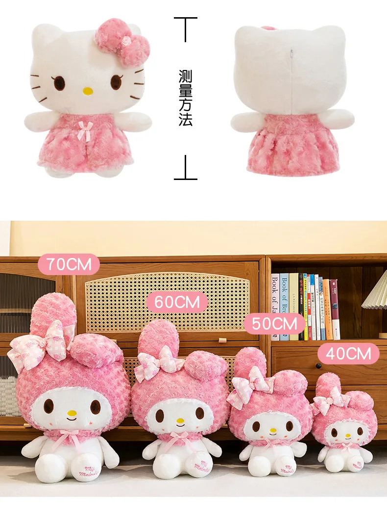 30cm/60cm Aoger Hello Kitty Kawaii Rose My Melody Cartoon Stuffed Animals Soft Plush Doll Companion Toy Children Birthday Gift