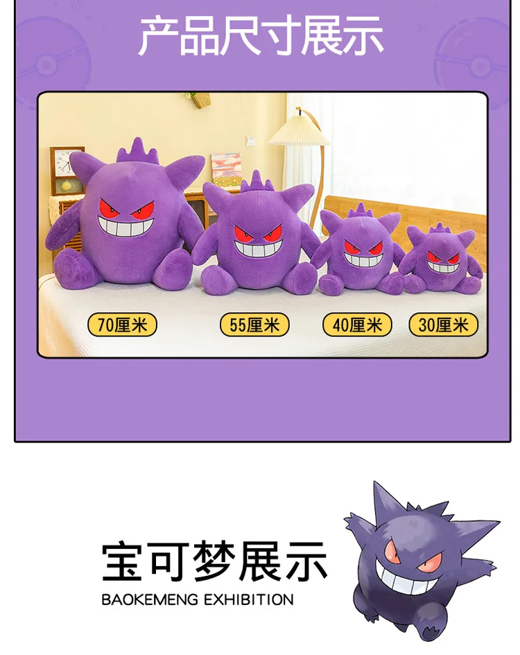 35/45/65CM Big Size Pokemon Gengar Plushies Kawaii Cartoon Anime Peluche Stuffed Animal Comfortable Soft Doll Children Toy Gifts