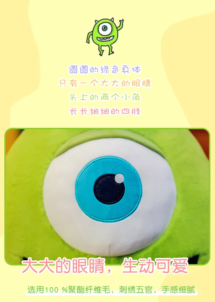 40/60CM Big Size Mike Wazowski Disney Anime Plush Stuffed Doll Kawaii Room Decoration Plushies Pillow Ornaments Holiday Gifts