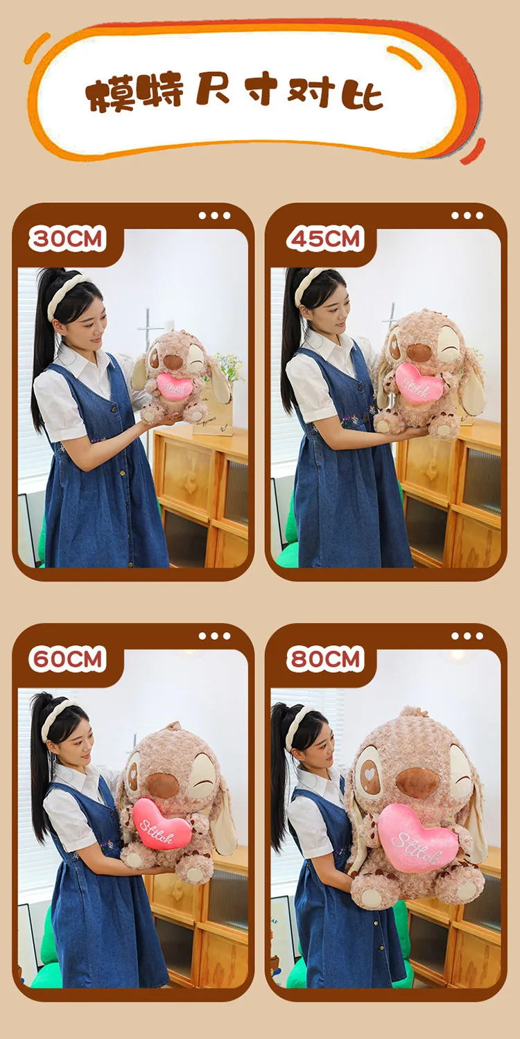 45/60/70cm Big Size Curly Stitch Disney Anime Plush Stuffed Doll Kawaii Coffee Plushies Pillow Ornaments Children's Holiday Gift