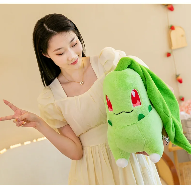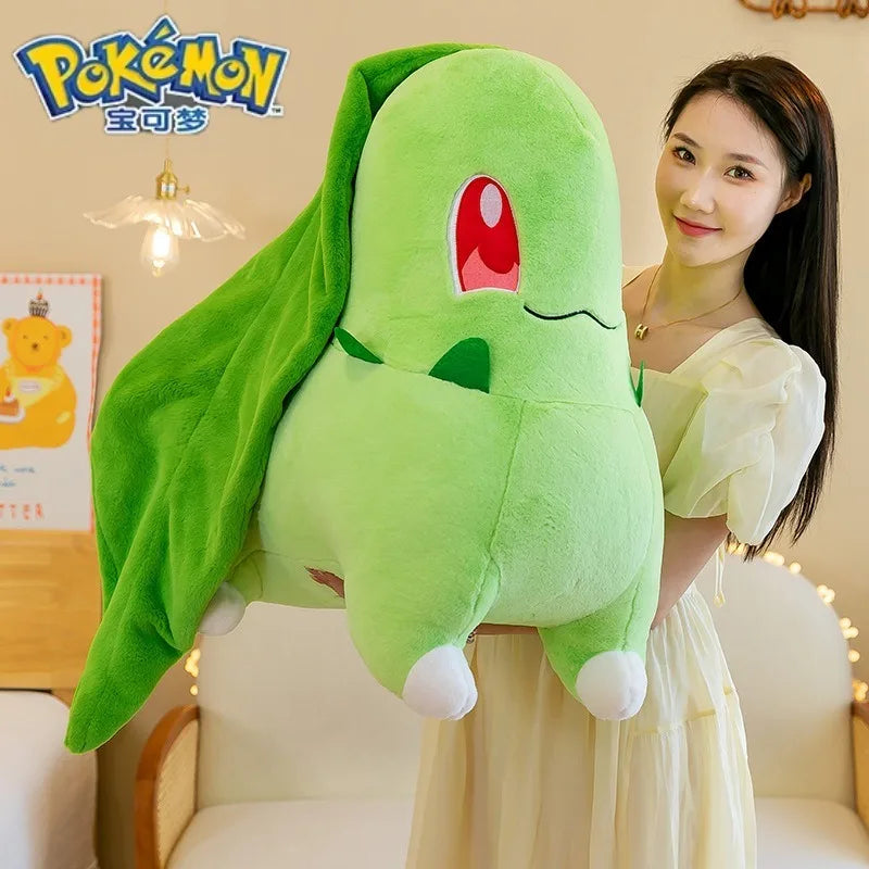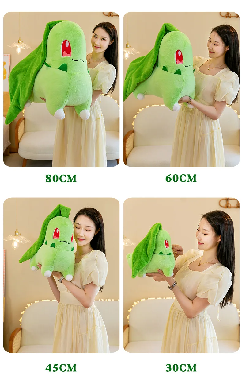 45/60/80cm Big Size Pokemon Chikorita Cartoon Anime Plush Stuffed Doll Room Decoration Plushies Pillow Ornaments Children's Gift