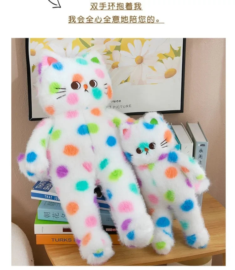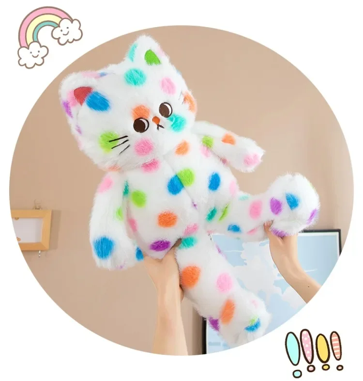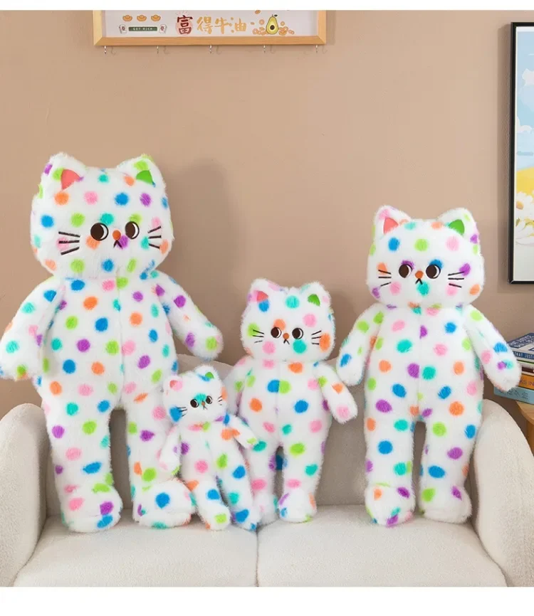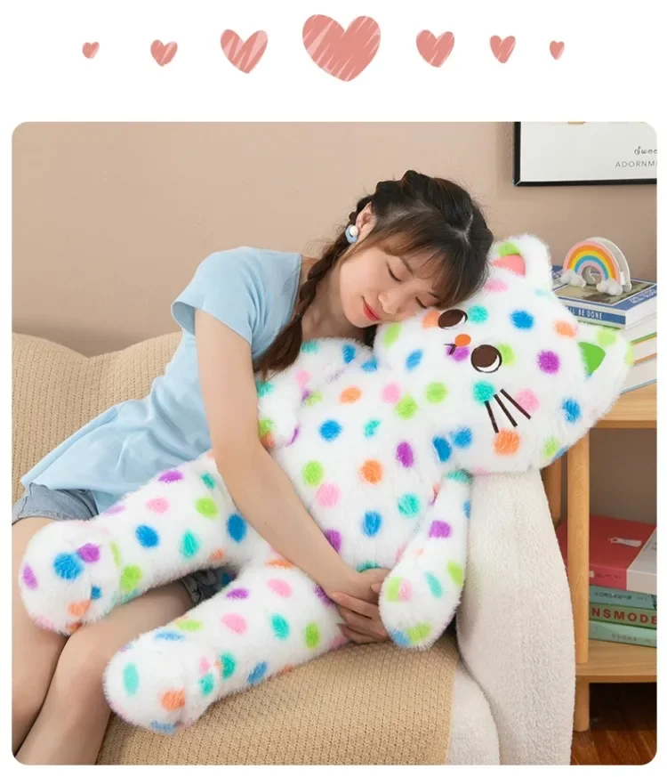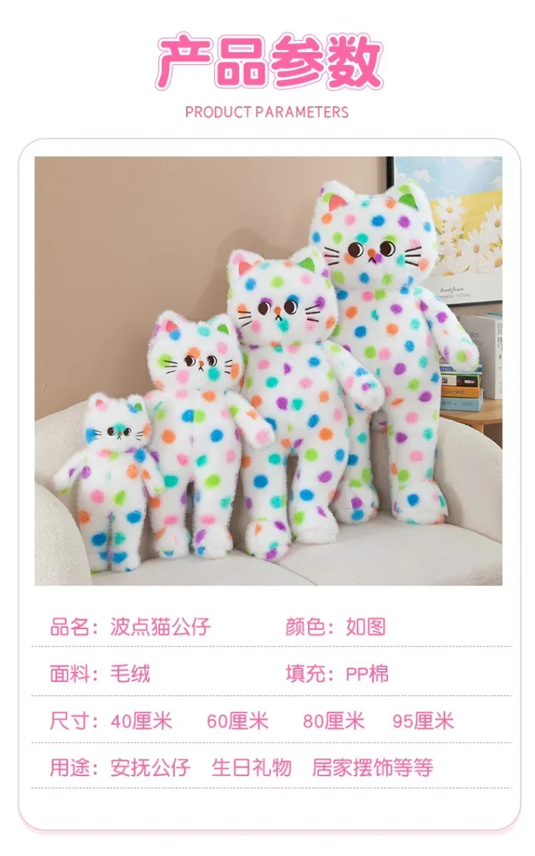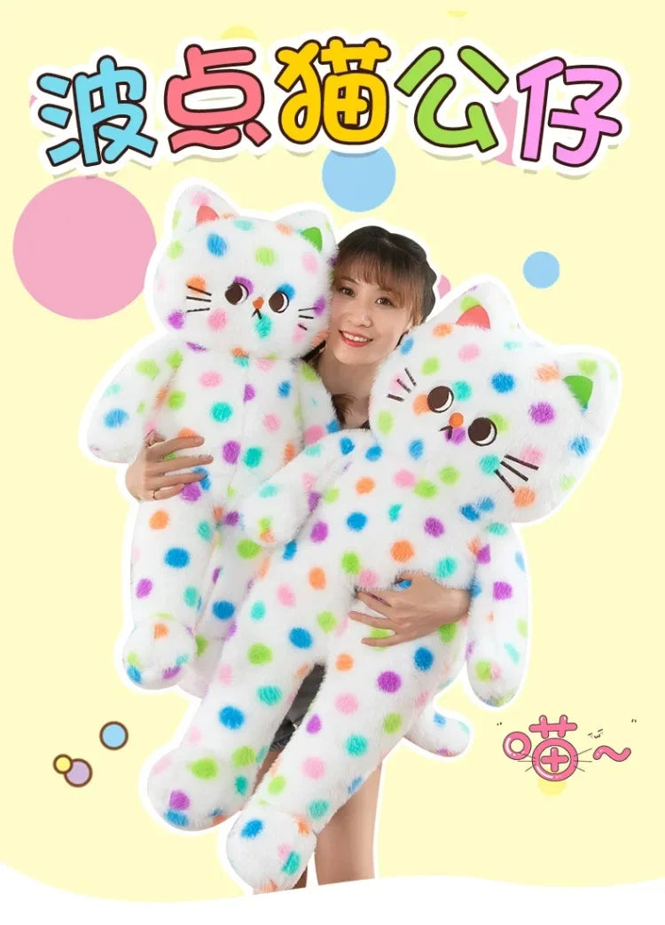 45-80cm Kawaii Wave Point Cat Plush Toy Doll Pillow Cushion Cartoon White Red Large Size Sleeping Plush Doll Gift for Girlfriend
