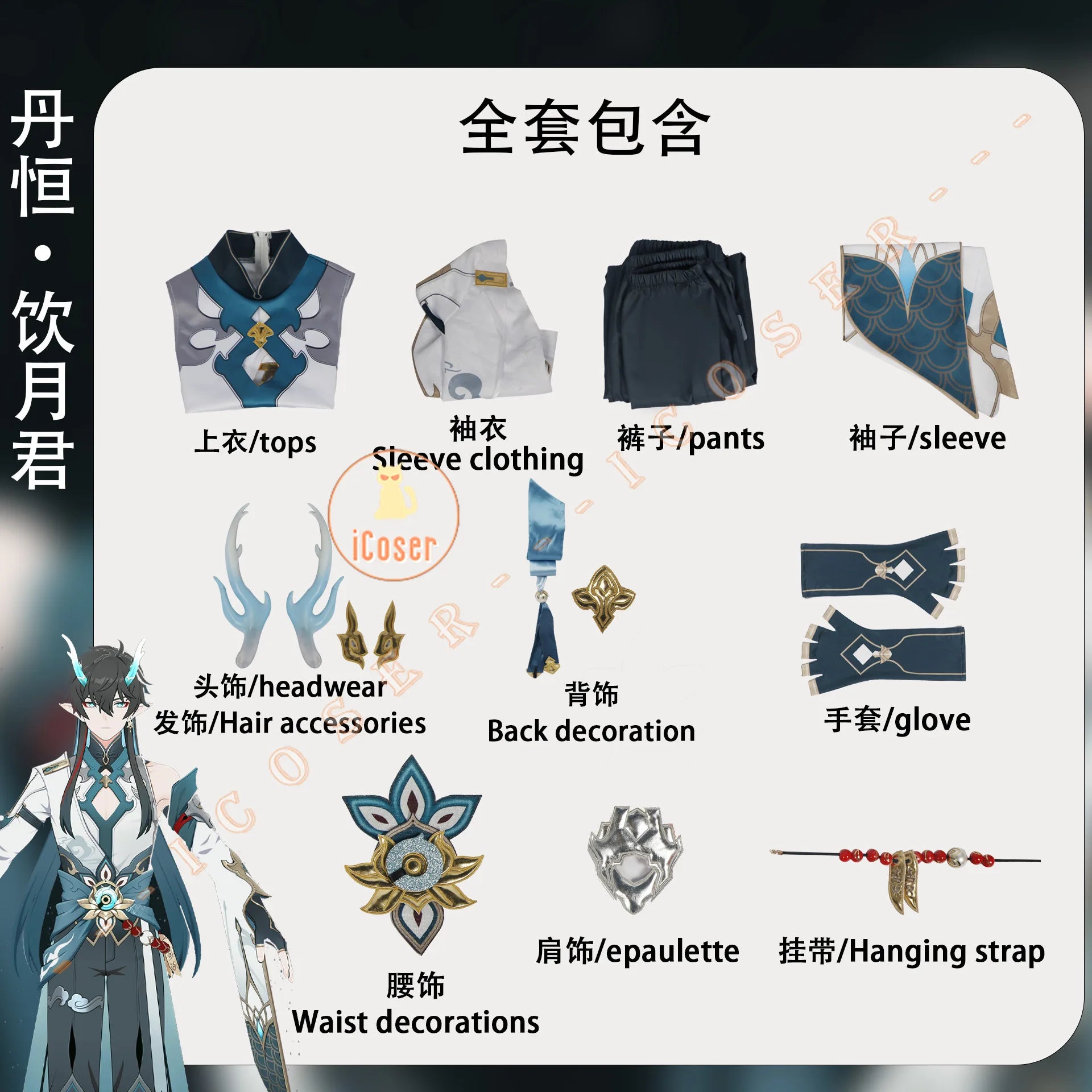 5 Star Dan Heng Imbibitor Lunae Cosplay Costume Honkai Star Rail Uniform Wig Dragon Horn Earrings Astral Express Party Men Women