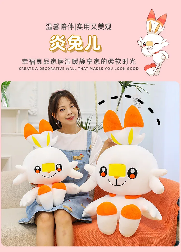 50/70/90cm Big Size Pokemon Scorbunny Anime Plush Stuffed Doll Room Decoration Kawaii Plushies Pillow Ornaments Holiday Gifts
