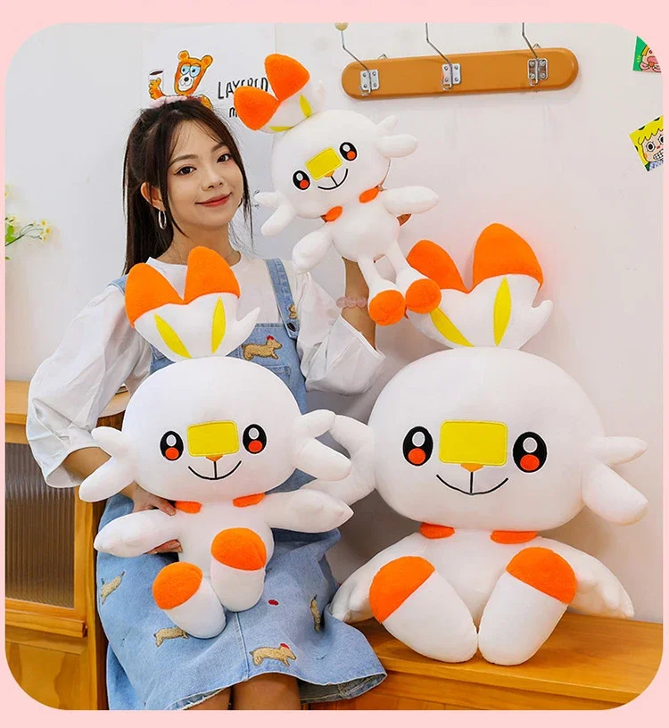 50/90cm Scorbunny Pokemon Large Plush Toys Anime Doll Cute Giant Pokémon Rabbit Cartoon Stuffed Plushie Pillow Gift for Kid Xmas