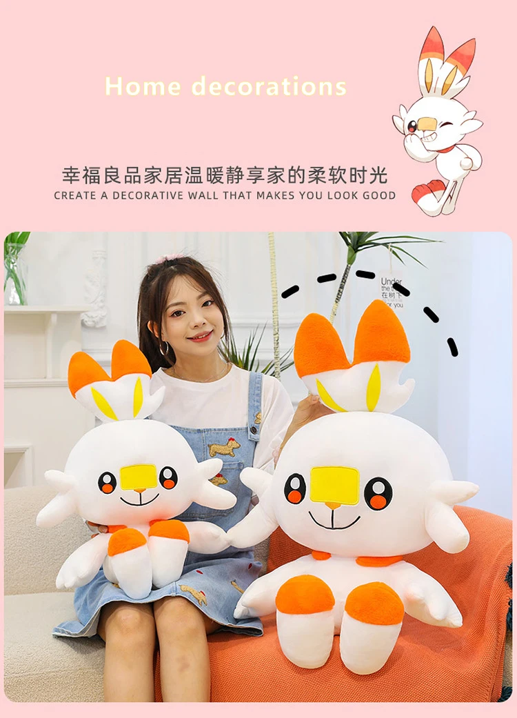 50/90cm Scorbunny Pokemon Large Plush Toys Anime Doll Cute Giant Pokémon Rabbit Cartoon Stuffed Plushie Pillow Gift for Kid Xmas