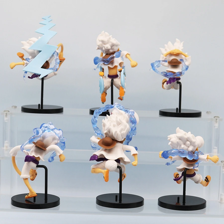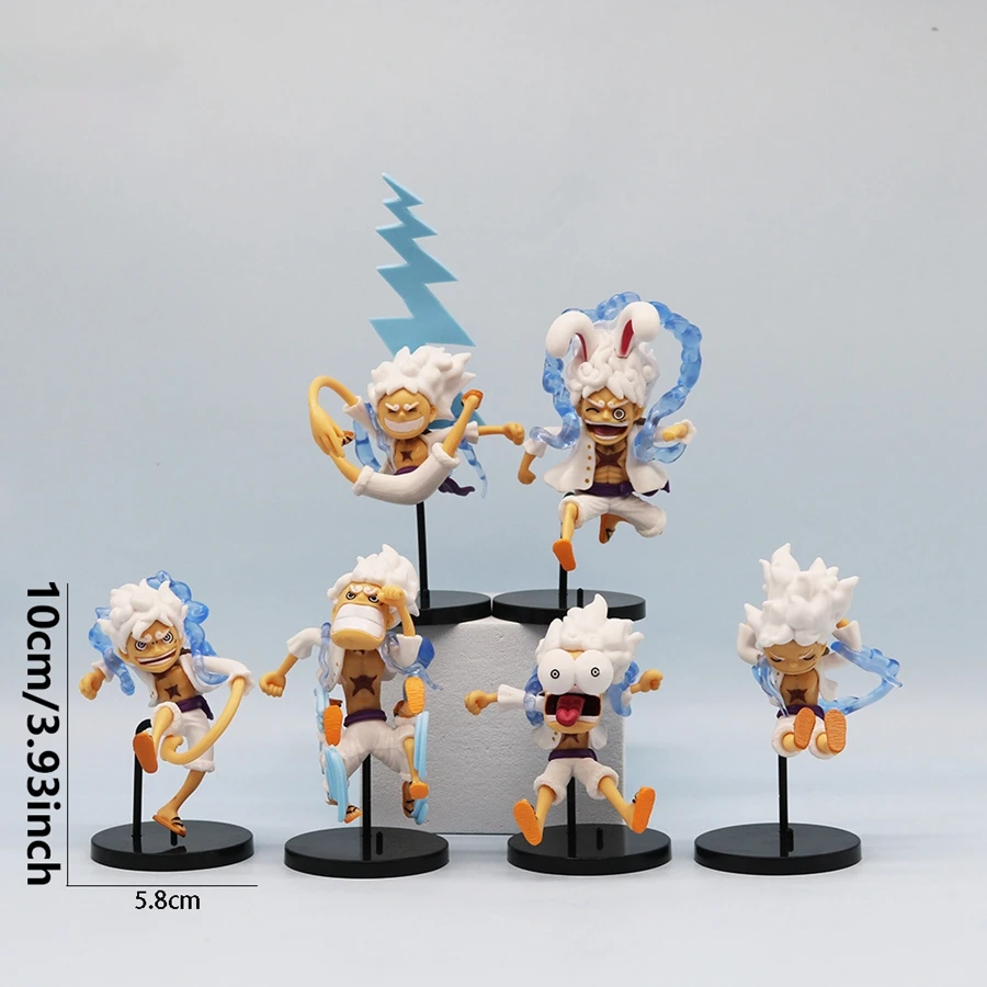 6PCS/Set One Piece Anime Figure Q Version GEAR5 Sun God Nika Luffy Action Figures Room Decoration PVC Collection Model Doll Toys