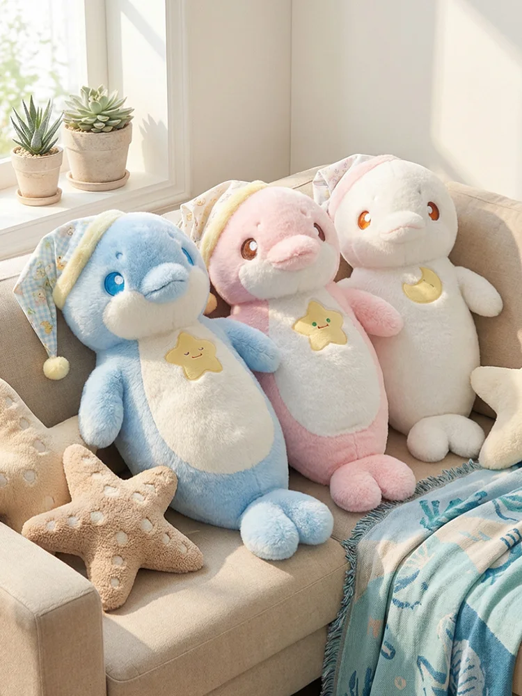 70cm Ocean Themed Decorative Pillow Chubby Dolphin and Seal Plushies Soft Toy Large Plush Sleeping Pillow Girl Boy Gift