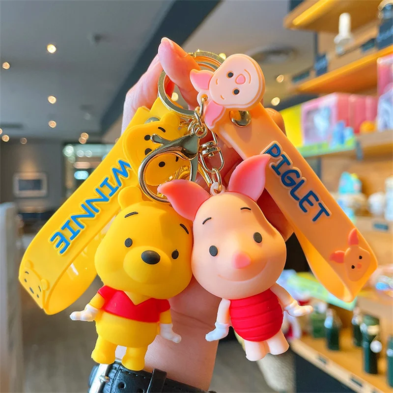 Anime Cartoon Disney Keychain Mickey Mouse Stitch Figure Minnie Donald Duck Piglet Key Chain Model Kids Toys Children Gift