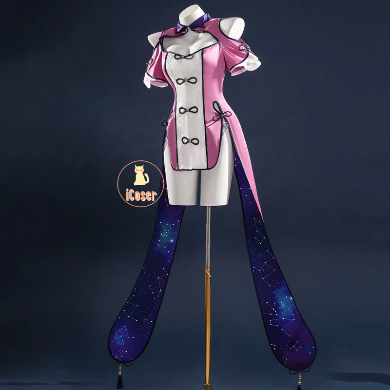Anime Date A Live Mukuro Hoshimiya Cosplay Costume Dress Spirit Form Outfit Lilac White Astral Qipao Halloween for Women Girls