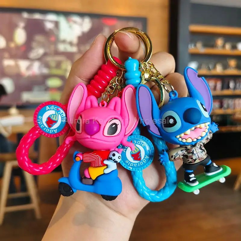 Anime Disney Keychain Cartoon Mickey Mouse Minnie Lilo & Stitch Cute Doll Keyring Ornament Key Chain Pendant Kids Toys Gift