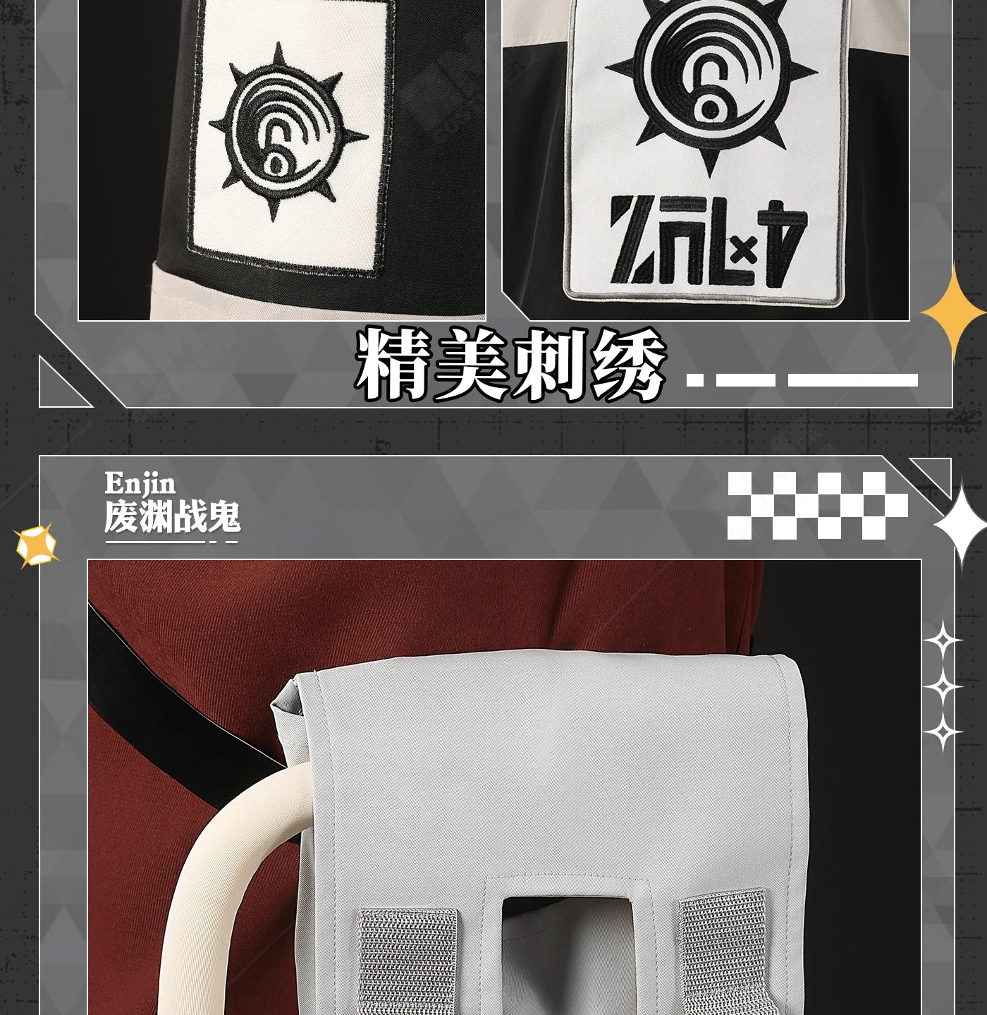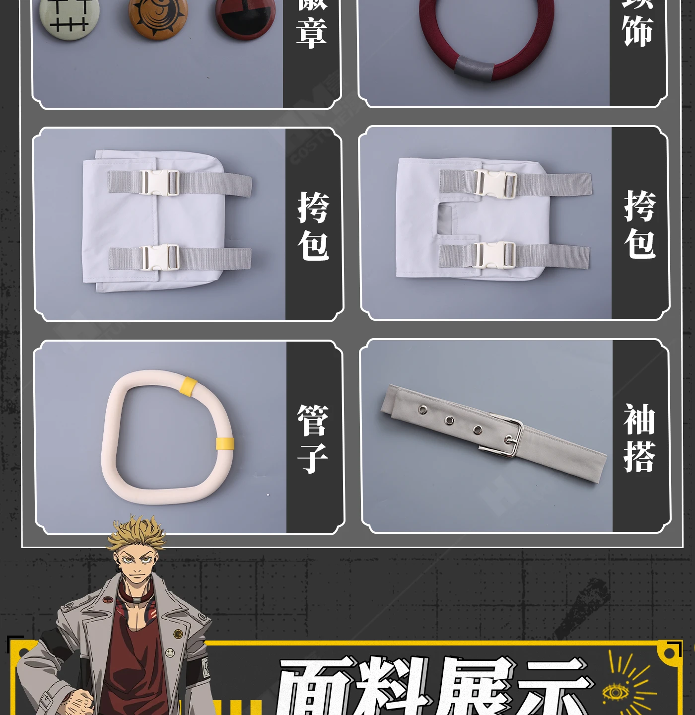 Components: Top,Pants,trench,Earrings,Badge,Bag,Accessory