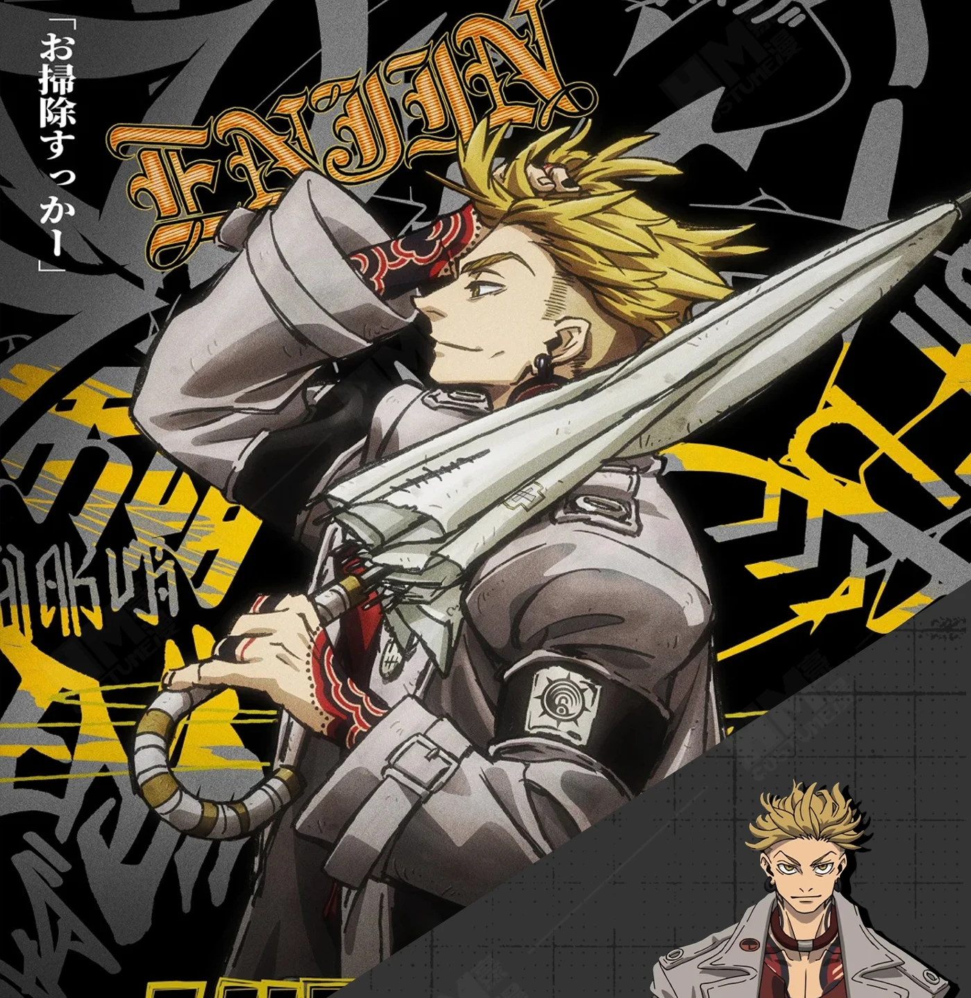 Anime Gachiakuta Enjin Cosplay Costume Wig Uniform Embroidery Earrings Badge Akuta Cleaners Halloween Party Women Men Role Play