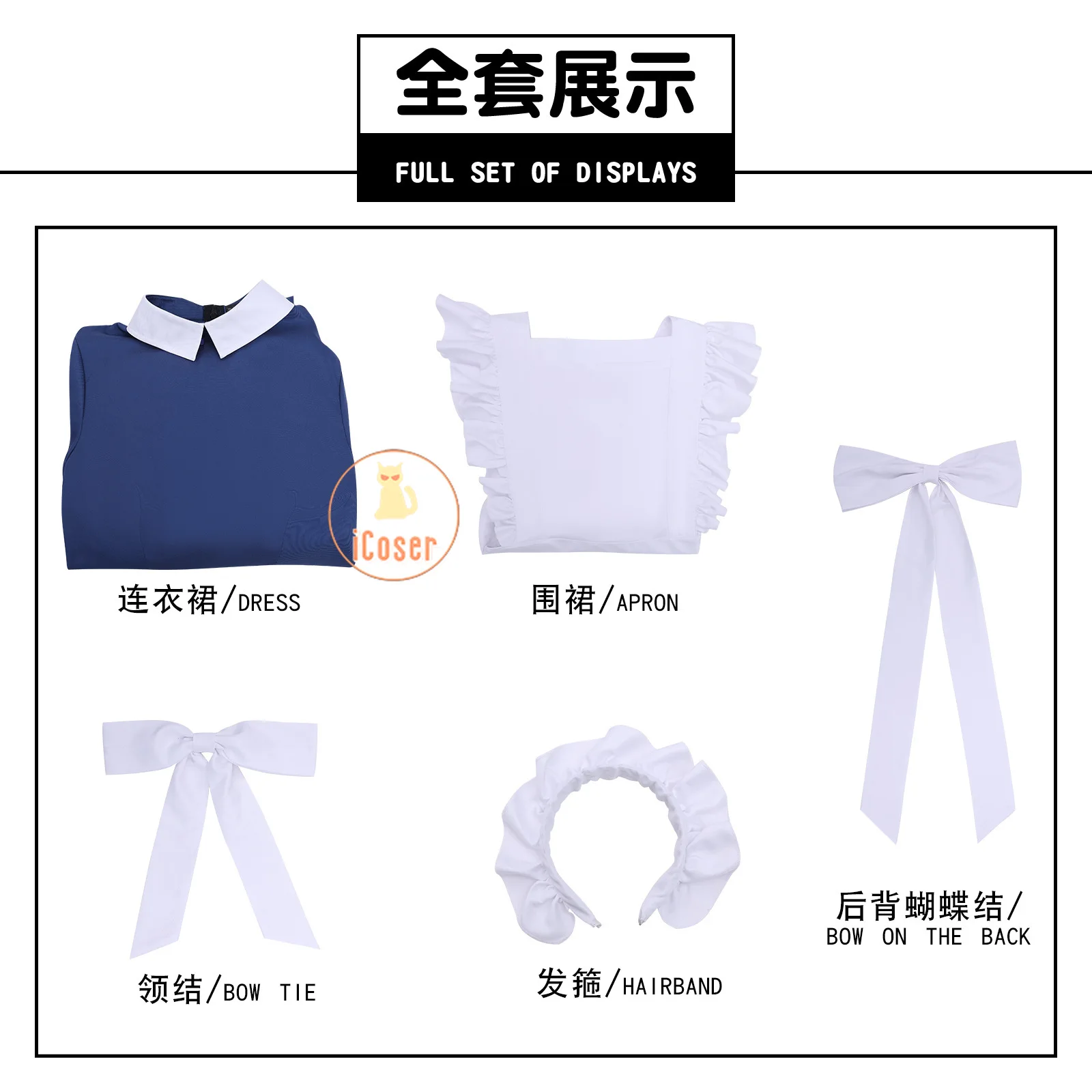 Components: DRESSES,Apron,Headband,Bow tie,Bow