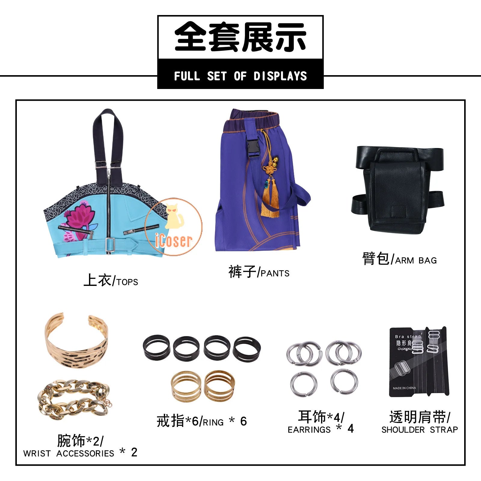 Components: Top,Pants,Accessory,Rings,Earrings