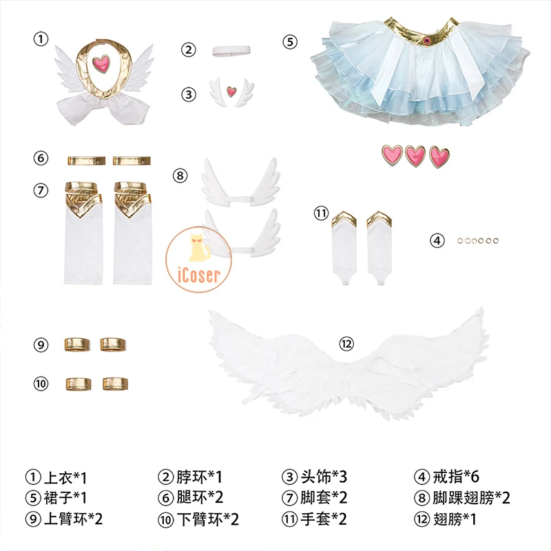 Components: Top,Leggings,SKIRTS,Wings,Rings,Headwear,Accessory