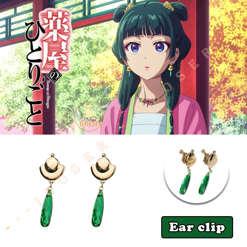 iCoser Anime The Apothecary Diaries Maomao Cosplay Earrings Ear Clips Green Pendant Ear Studs Accessories Props for Women Girls Gifts
