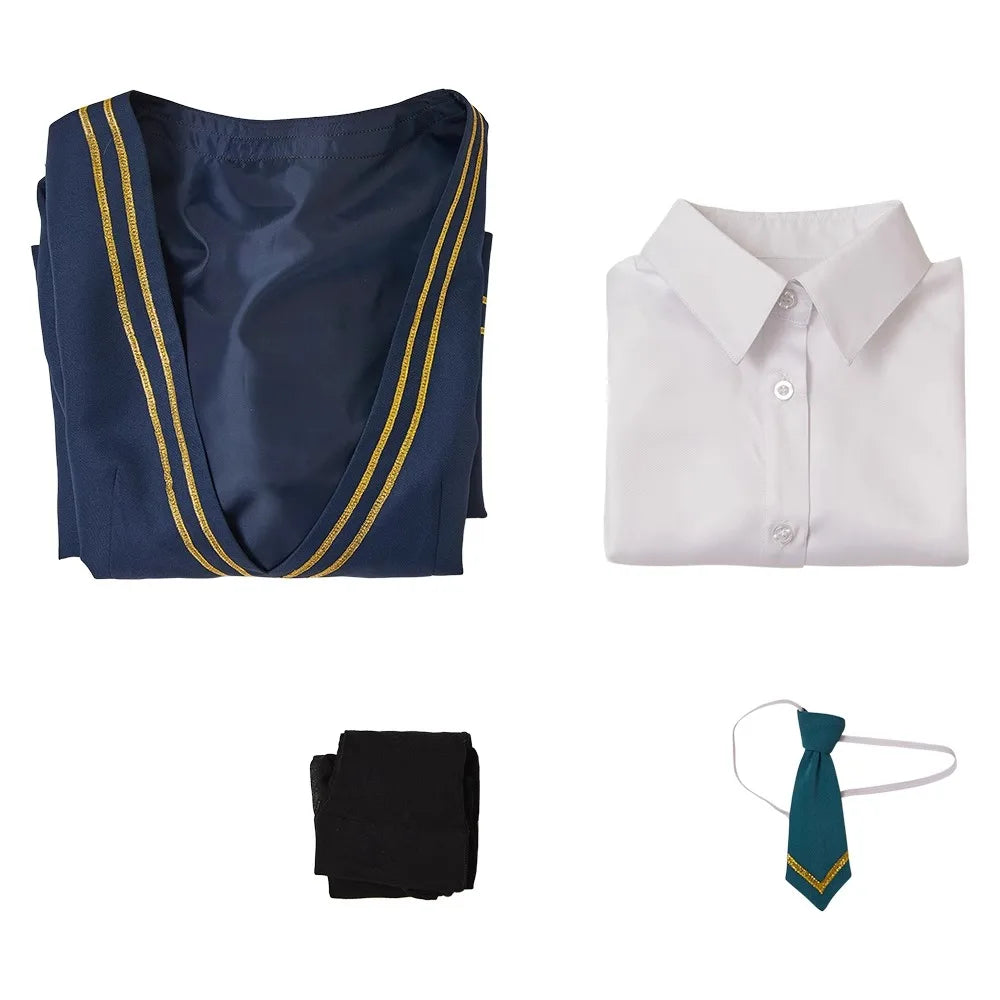 Anime Witch Watch Nemu Miyao Cosplay Costume Blue Dress Tie Shirt Stocking Outfit Halloween Party for Women Girls Carnival Props