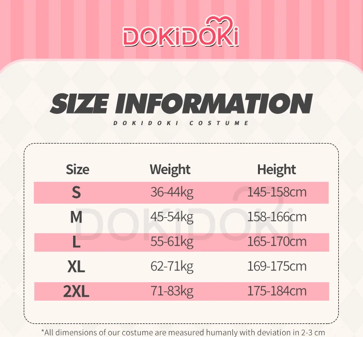 Please read the size chart carefully. (◕ˇ∀ˇ◕)Welcome contact us for help about size choosing with your height ,weight ,waist ,bust,hip measurement.