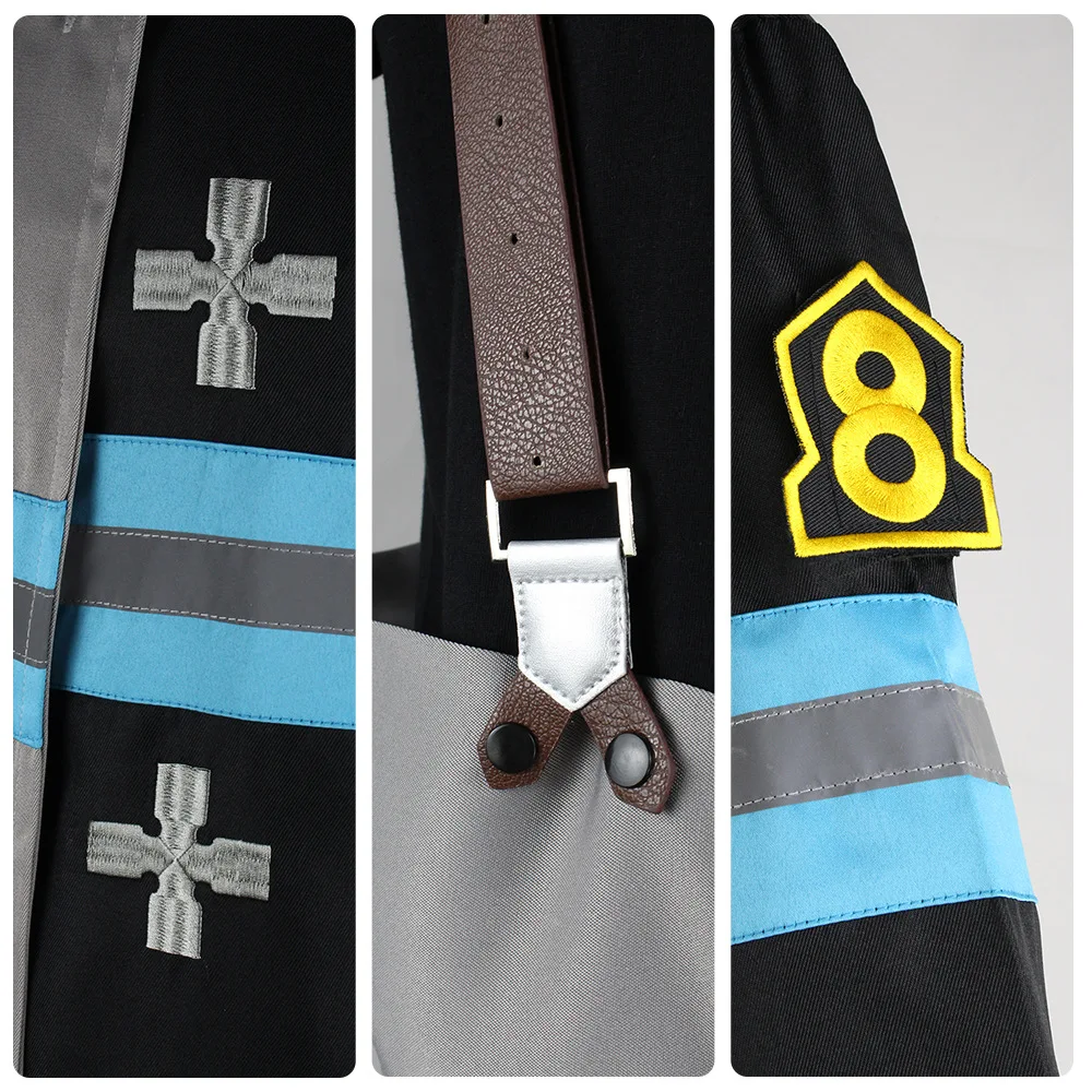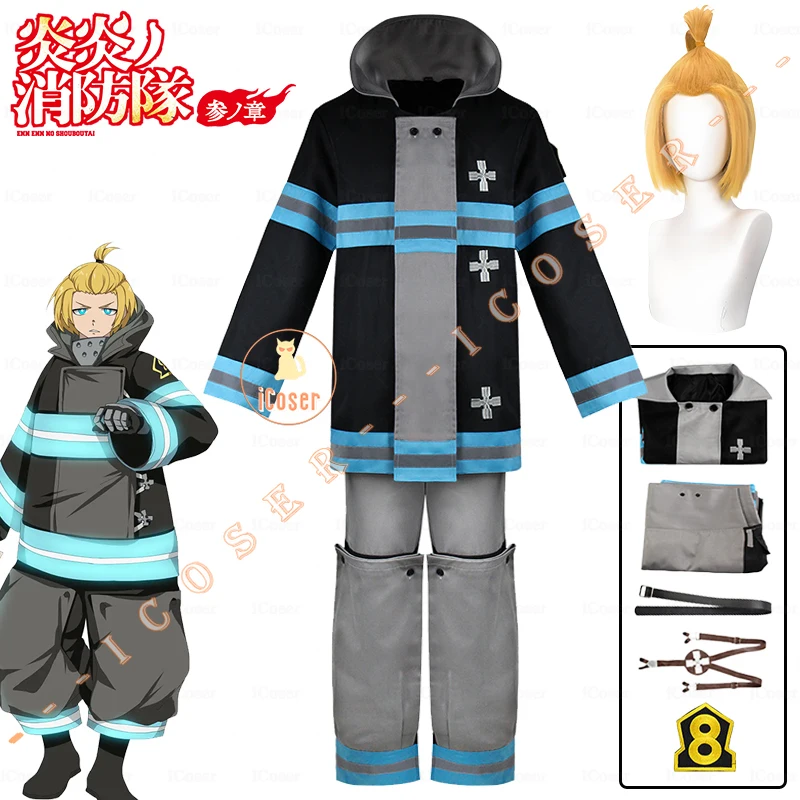 Arthur Boyle Cosplay Costume Wig Black Blue Uniform Anime Fire Force Protective Outer Jacket Halloween Party Women Men Carnival