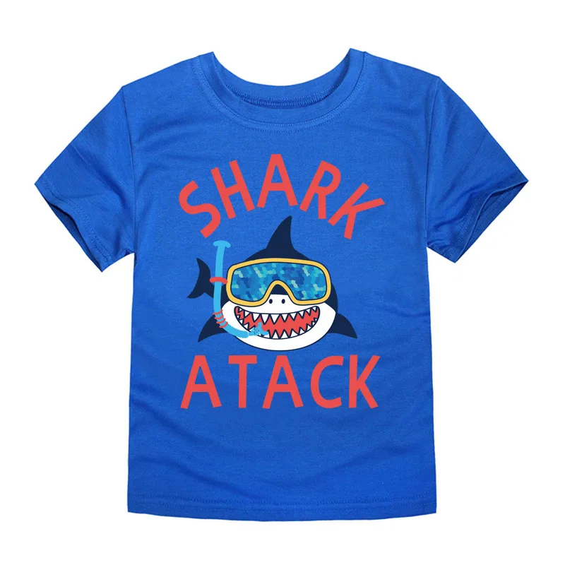 Boys Clothes Cotton Kids Toddlers 2 to 3 4 5 6 7 8 9 10 11 12 Years Dark Blue Shirt Short Shark Tops Designer Children Clothing