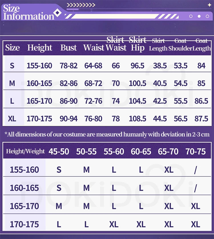 Please read the size chart carefully. (◕ˇ∀ˇ◕)Welcome contact us for help about size choosing with your height ,weight ,waist ,bust,hip measurement.