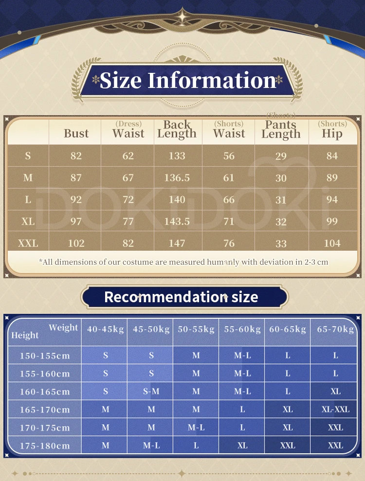 Please read the size chart carefully. (◕ˇ∀ˇ◕)Welcome contact us for help about size choosing with your height ,weight ,waist ,bust,hip measurement.
