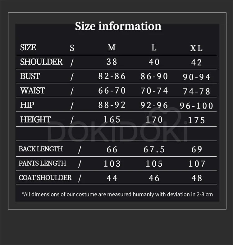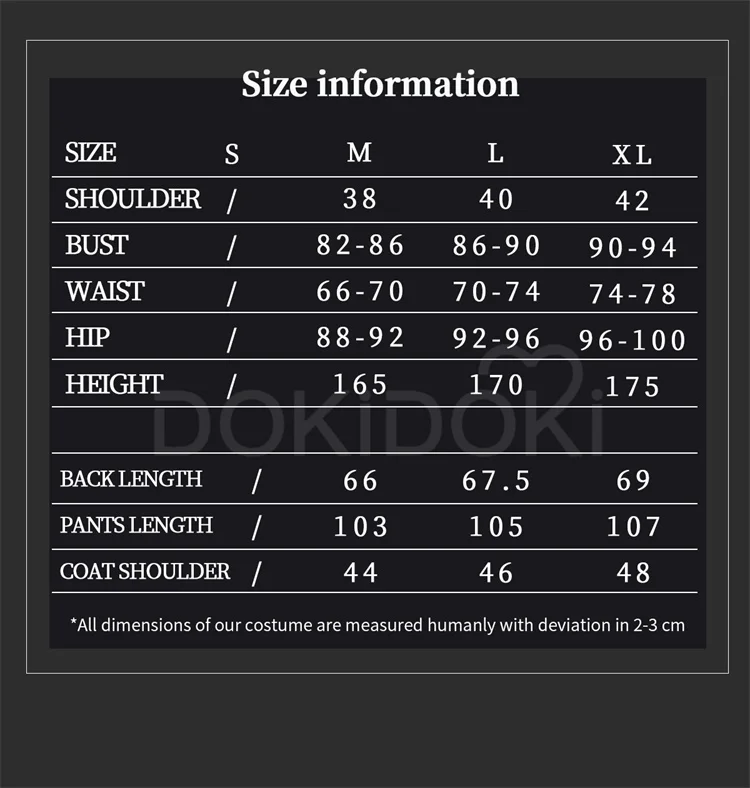 Please read the size chart carefully. (◕ˇ∀ˇ◕)Welcome contact us for help about size choosing with your height ,weight ,waist ,bust,hip measurement