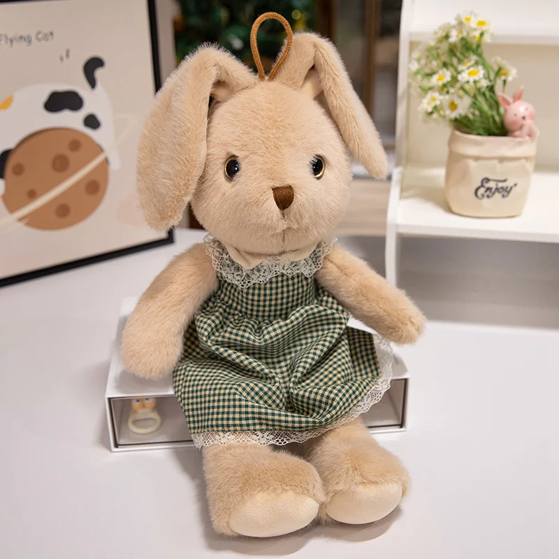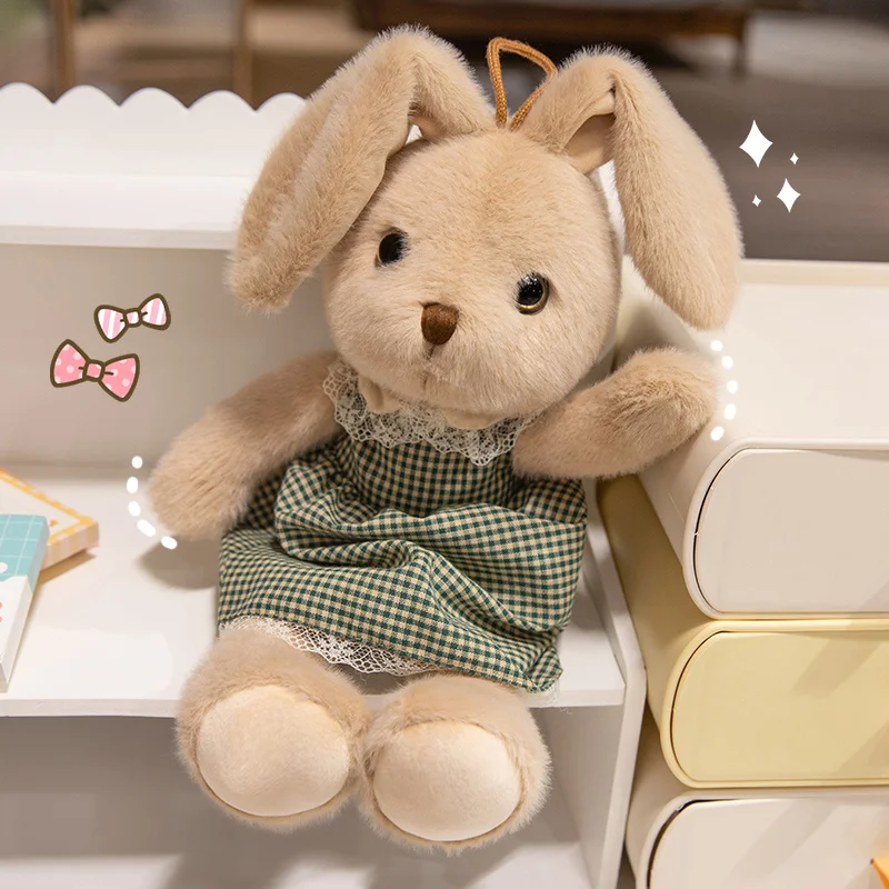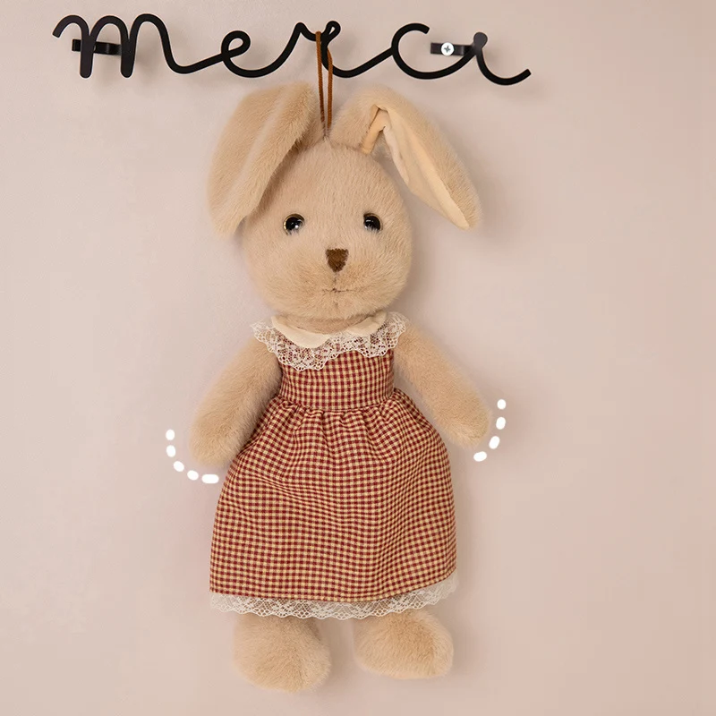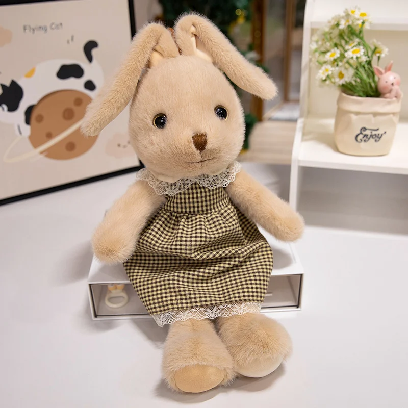 Classic Style Bunny Plush Toy Wearing Plaid Skirt Cute Rabbit Soft Doll Baby Girl Sleep Companion Bedroom Decoration