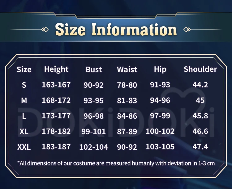 Please read the size chart carefully. (◕ˇ∀ˇ◕)Welcome contact us for help about size choosing with your height ,weight ,waist ,bust,hip measurement.