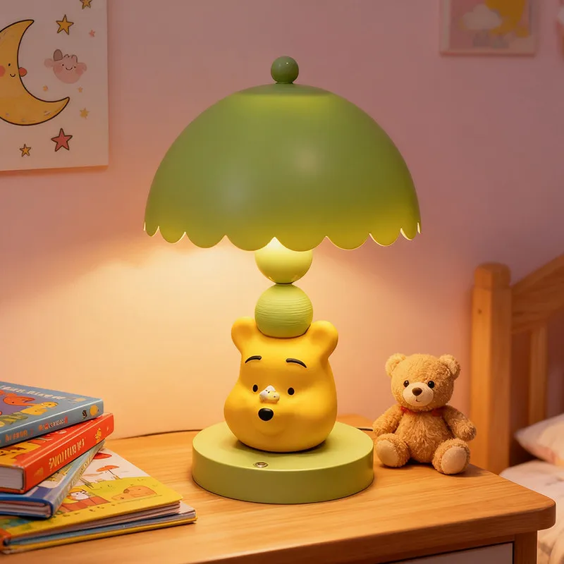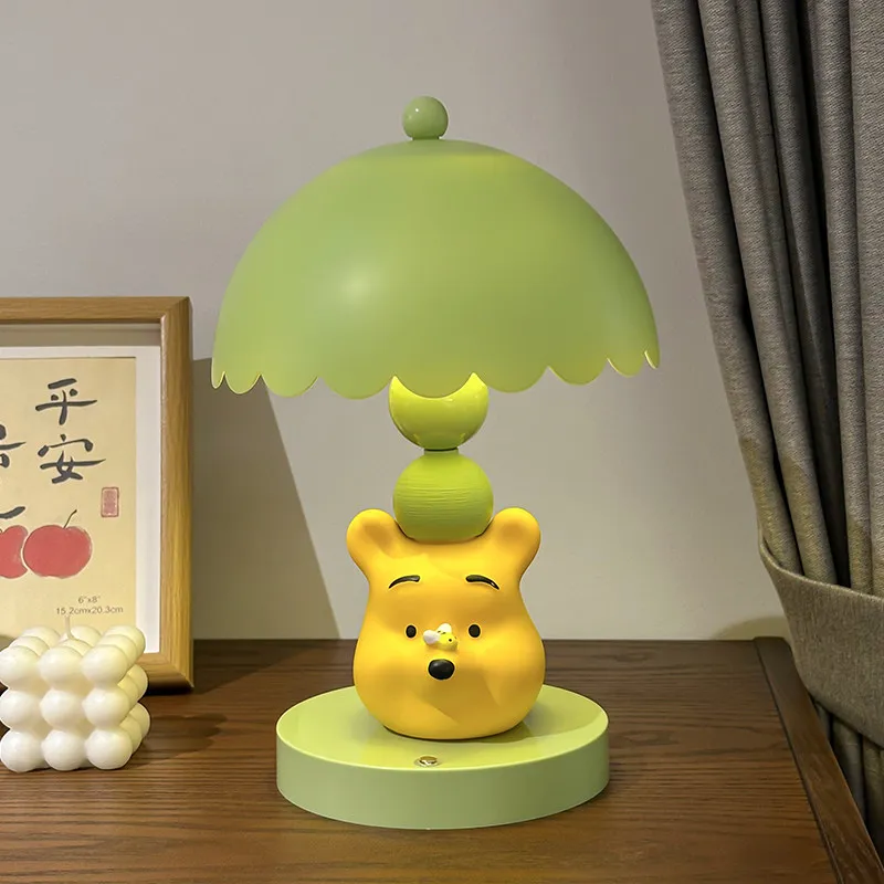 Cute Disney Winnie Pooh Bedroom Bedside Lamp Anime Figure Table Lamp USB Plug 3 Color Dimming Living Room Study Atmosphere Light