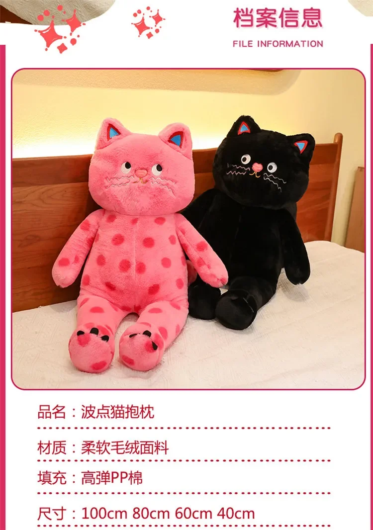 Cute Polka Dot Cat Plushie Doll Internet Famous Plush Toy Cat Doll Pillow Cushion for Girls Sleeping Gift Charming Skin-Friendly