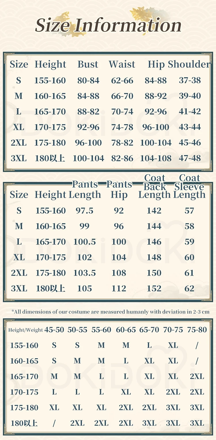 Please read the size chart carefully. (◕ˇ∀ˇ◕)Welcome contact us for help about size choosing with your height ,weight ,waist ,bust,hip measurement.