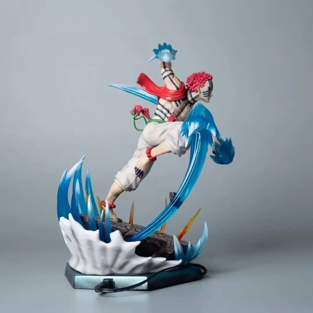Demon Slayer Anime Agatsuma Zenitsu Figure Akaza Hakuji Figurine With Light Gk Statue Model Collection Room Decora Desk Toy Gift