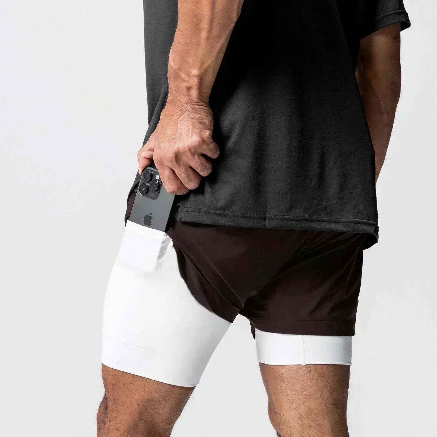 Graphic 2 in 1 Workout Running Shorts for Men Gym Athletic Performance Shorts with Phone Pocket Towel Loop Activewear Outfits