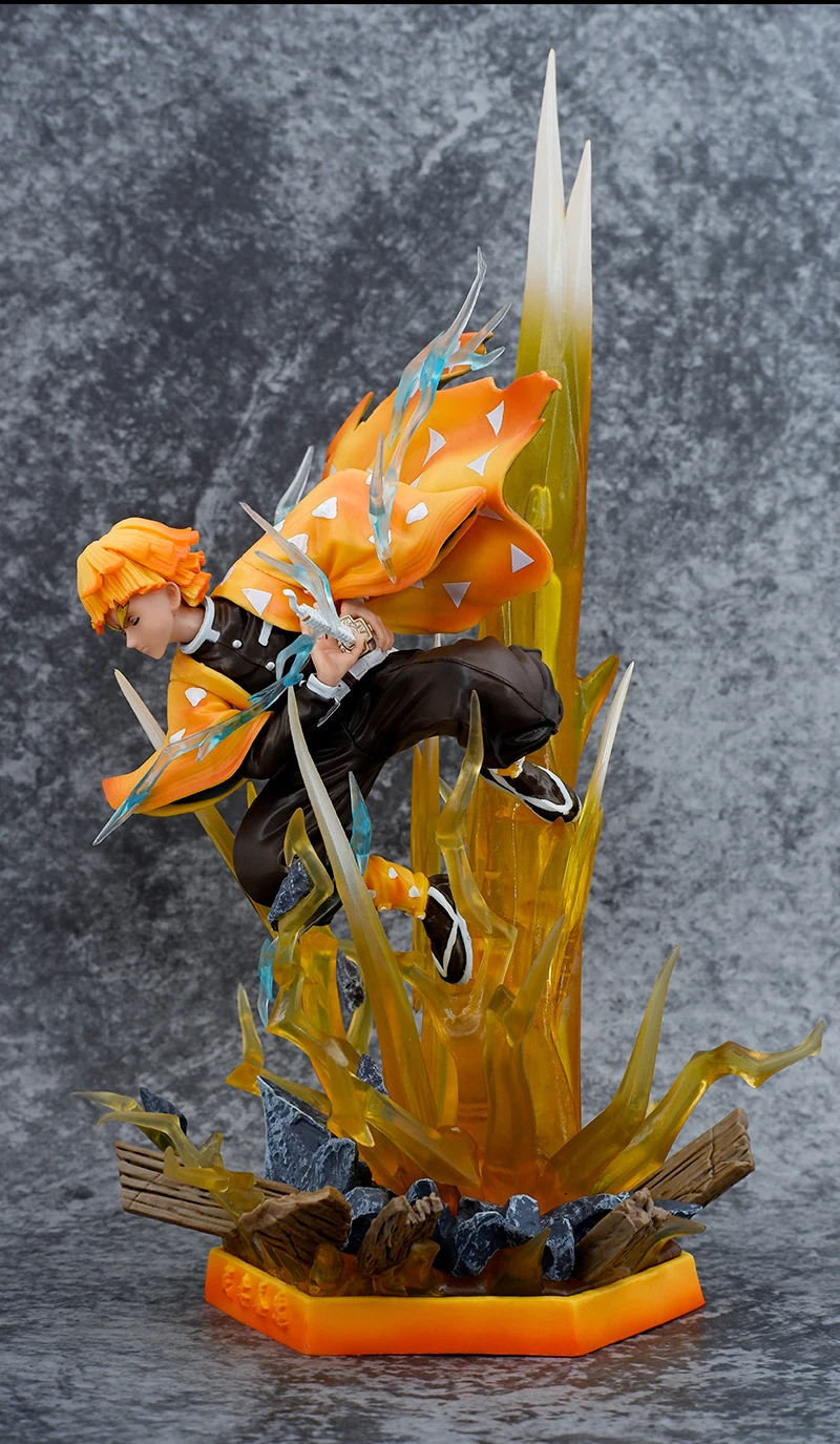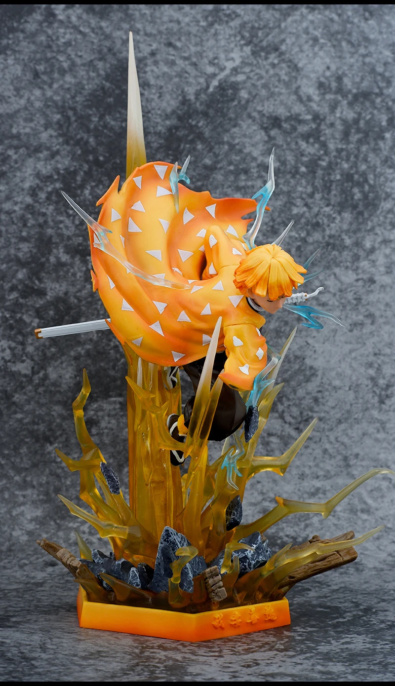 Demon Slayer Figure Agatsuma Zenitsu Double-Headed Luminescable Action Figurine Decoration Model Toys Gift 35cm Anime Statue Pv
