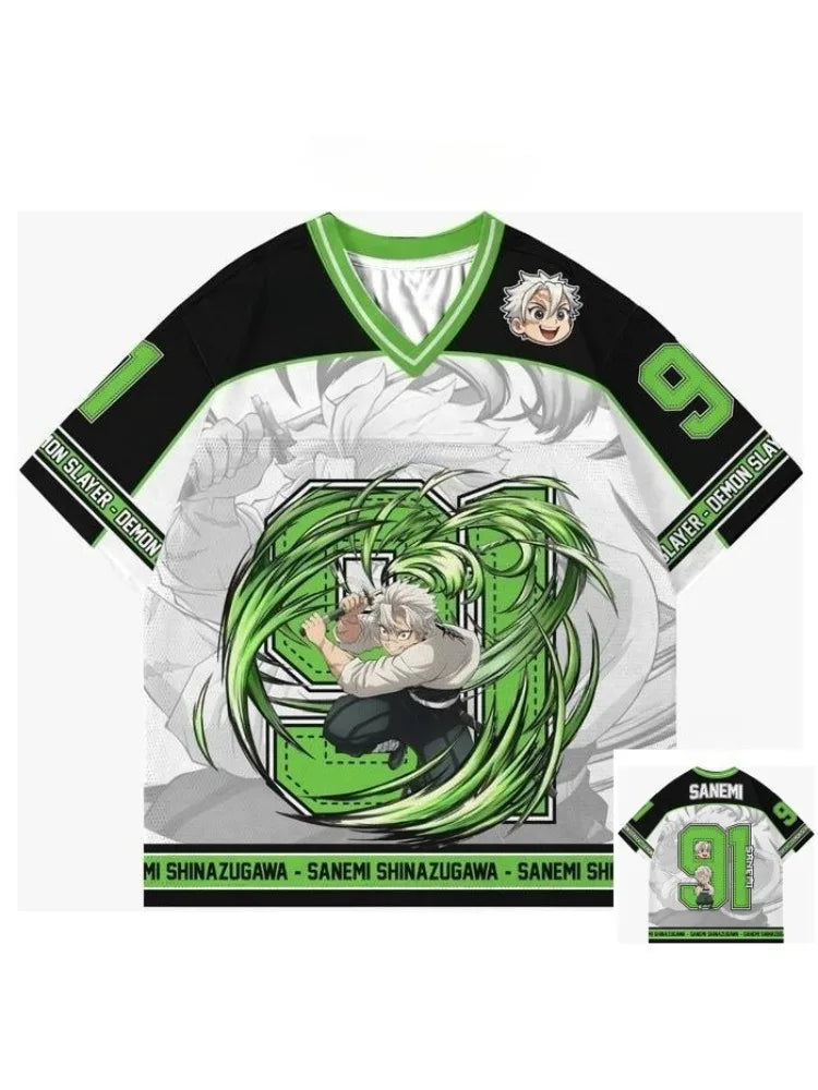 Demon Slayer Sanemi Shinazugawa Anime Series Number 91 Jersey Oversize Kpop Baseball Hockey Outfit Tshirt Daily Unisex Tops Tees