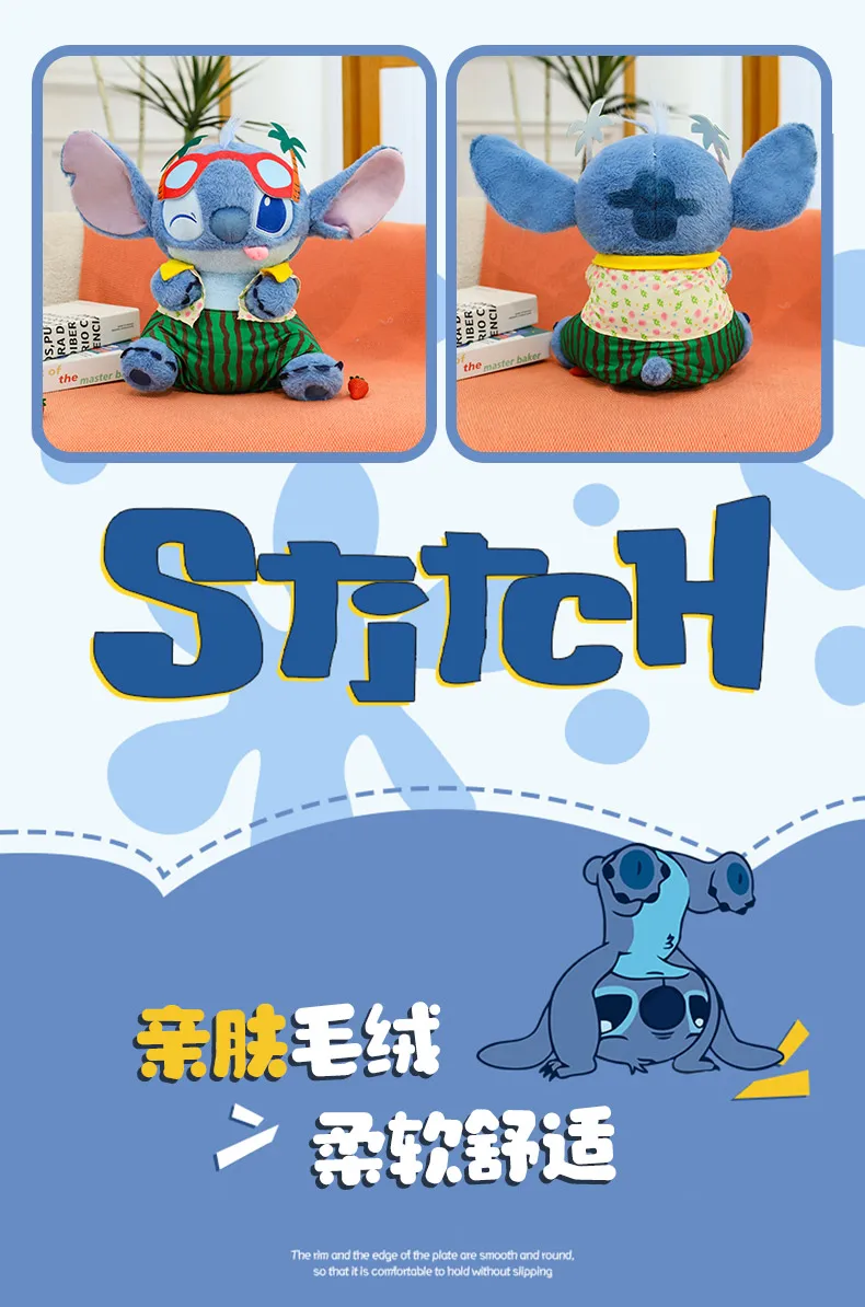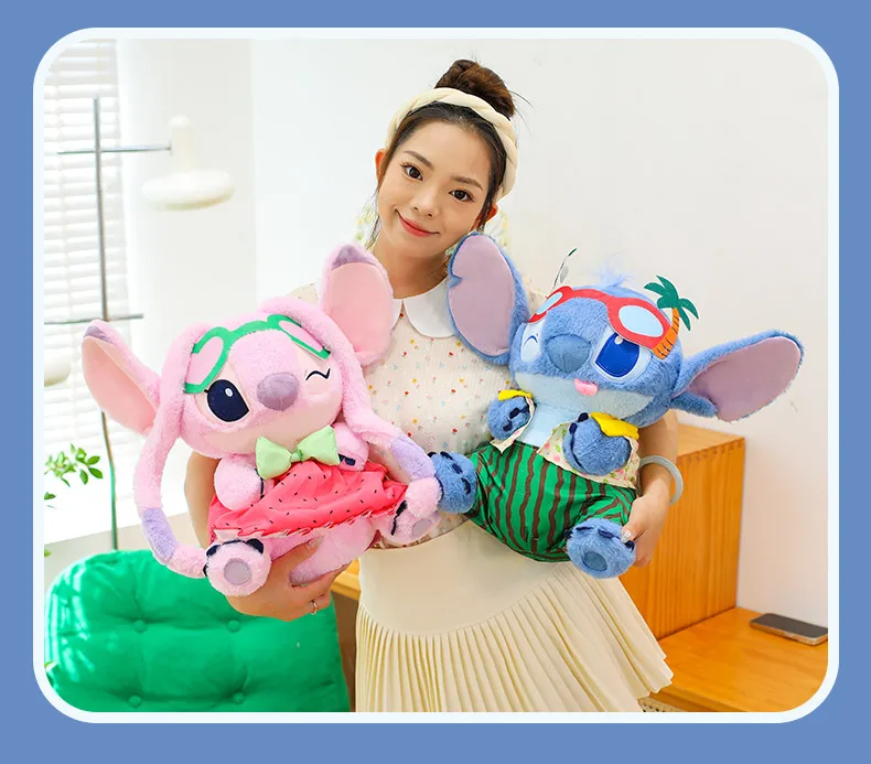 Disney 60cm Summer Watermelon Stitch Kawaii Plush Toy Cartoon Cute Soft Pillow Home Decoration Doll Children's Christmas Gifts