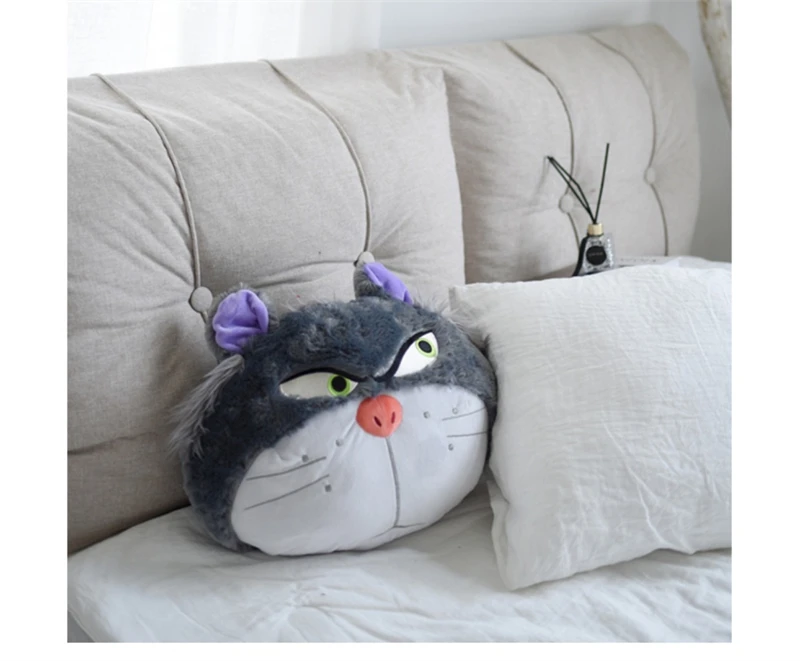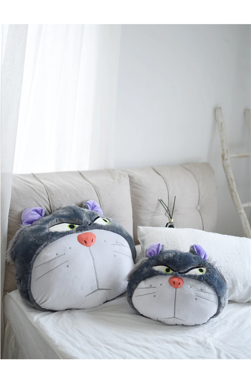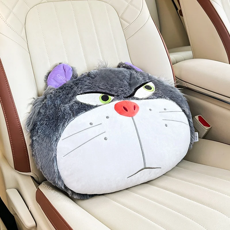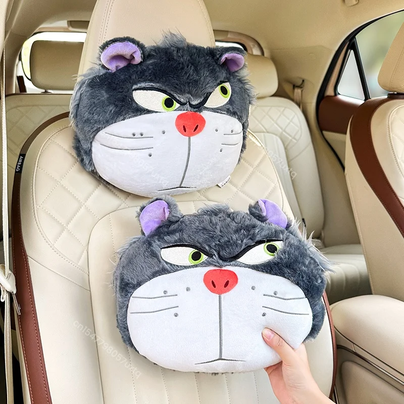 Disney Lucifer Cat Headrest Back Cushion For Car Seat Safety Belt Cover Huggable Pillow Stuffed Animal Grey Cat Plushies Gifts