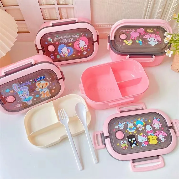 Disney Stitch Cartoon Portable Lunch Box Child Student Hermetic Bento Box Office Portable Double Layer Lunch Box High Capacity